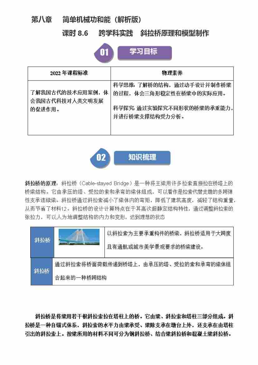 课时8.6实践斜拉桥原理和模型制作(学生版)-( 沪科版五四制2024)