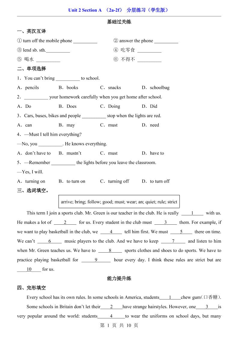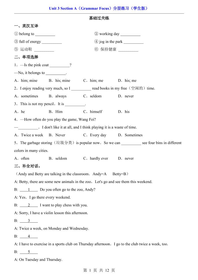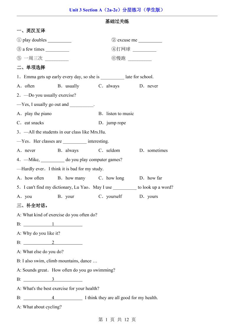 Unit 2 Section A(2a-2f)(分层练习)8