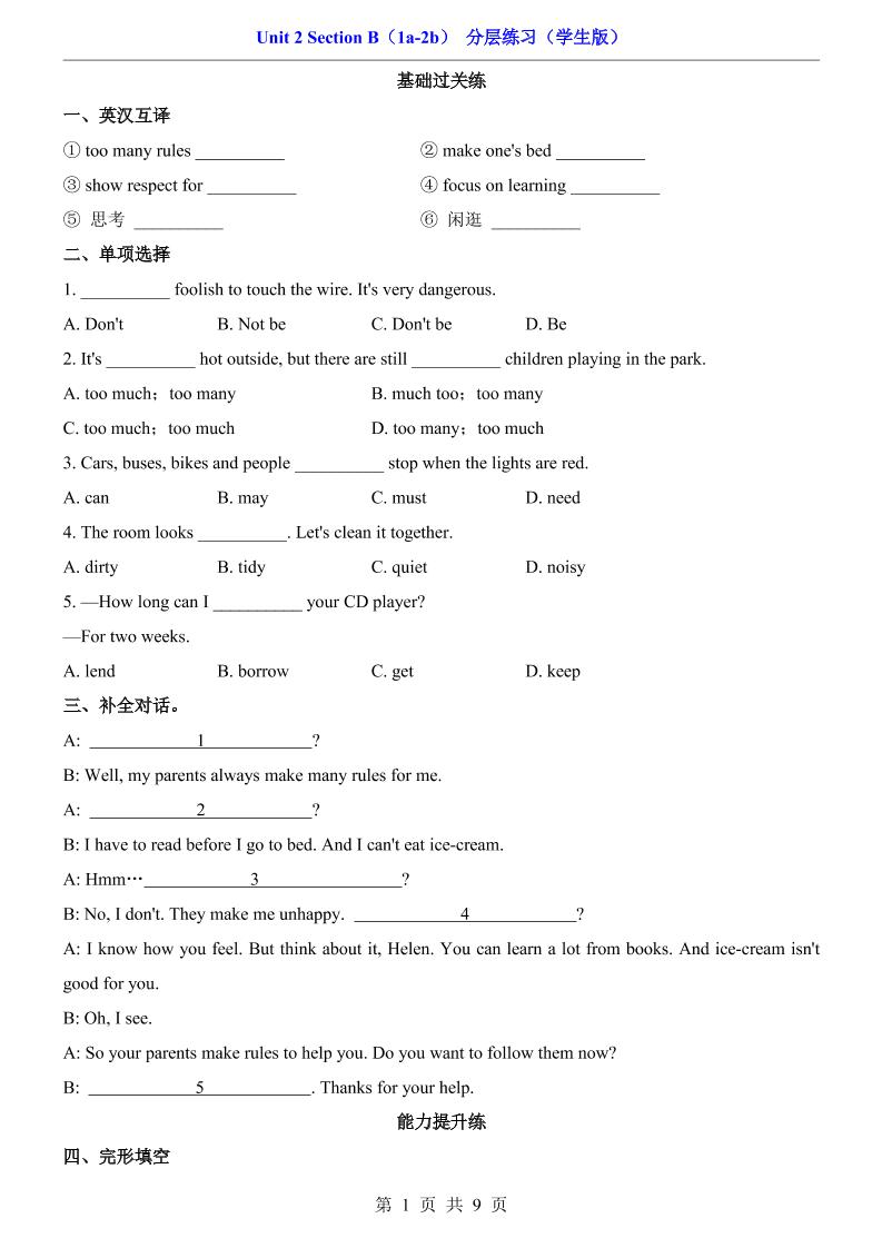 Unit 2 Section B(1a-2b)(分层练习)8