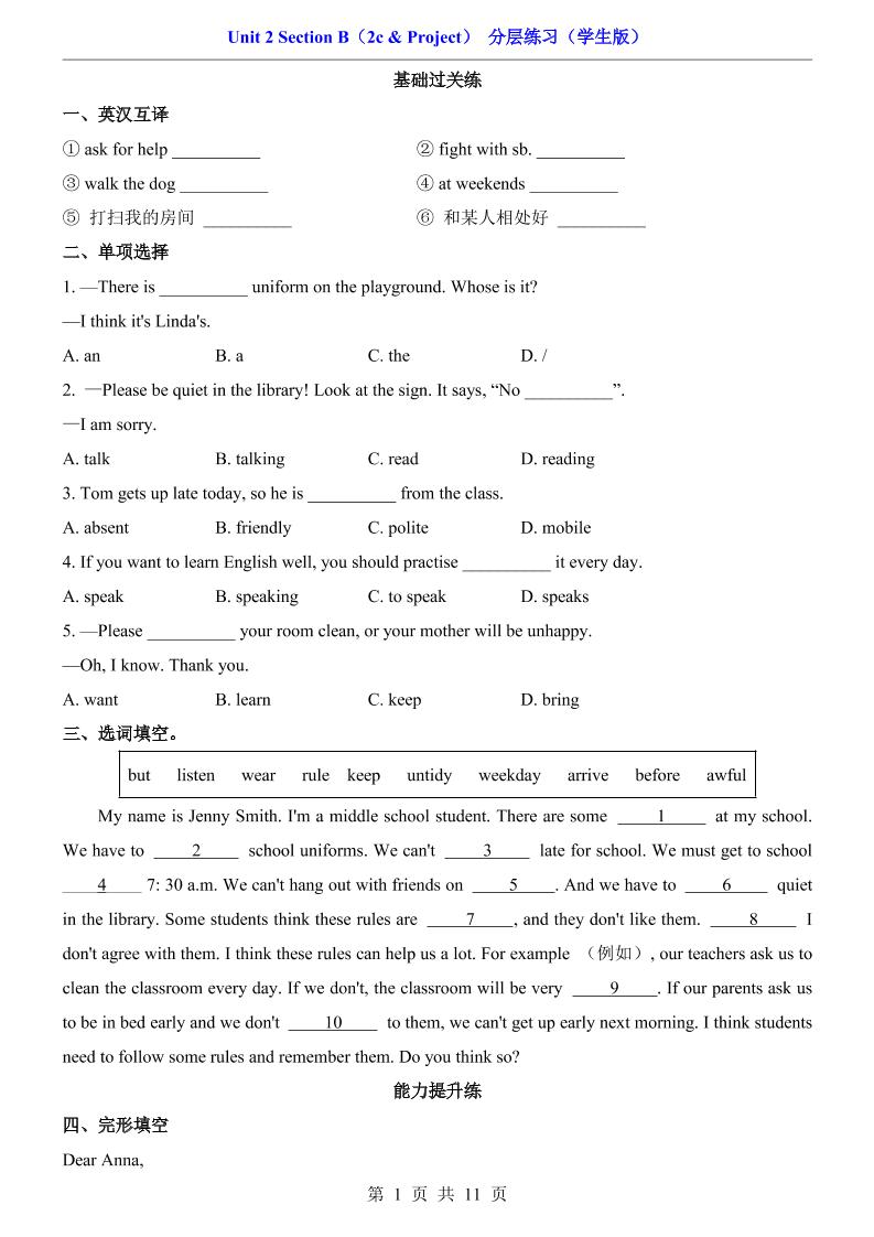 Unit 2 Section B(2c & Project)(分层练习)8