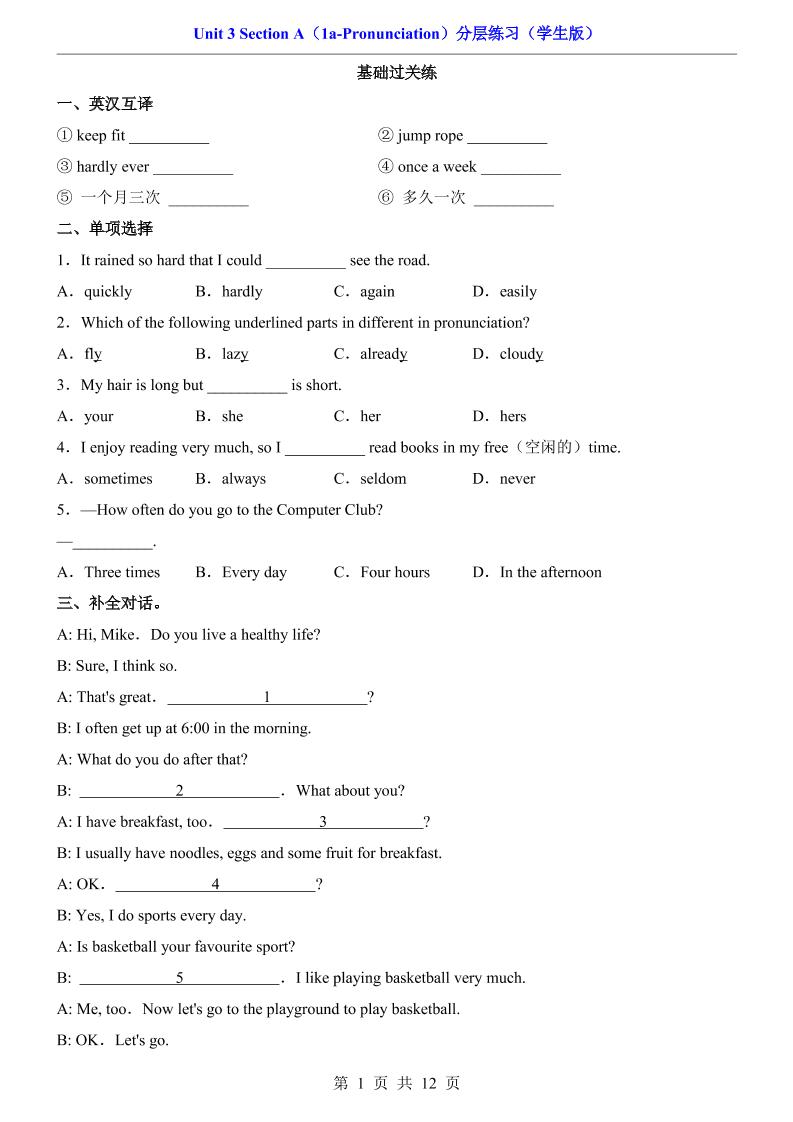 Unit 3 Section A(1a-Pronunciation)(分层练习)8