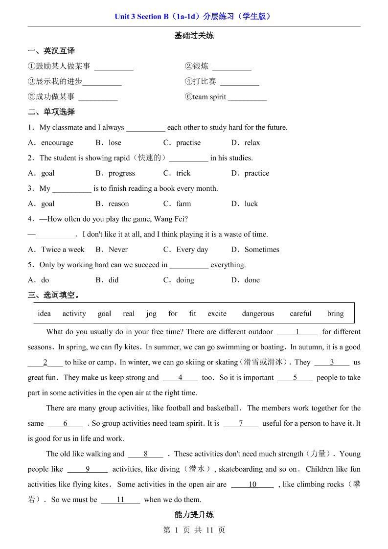 Unit 3 Section B(1a-1d)(分层练习)8