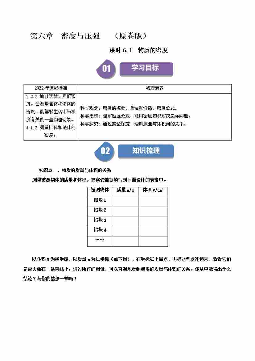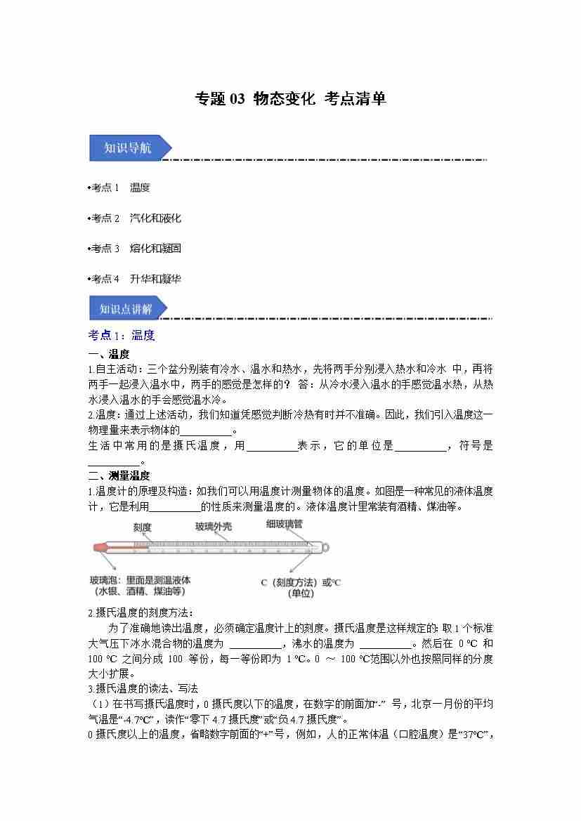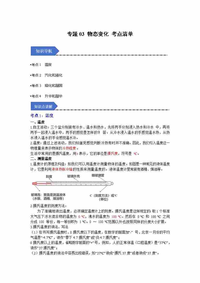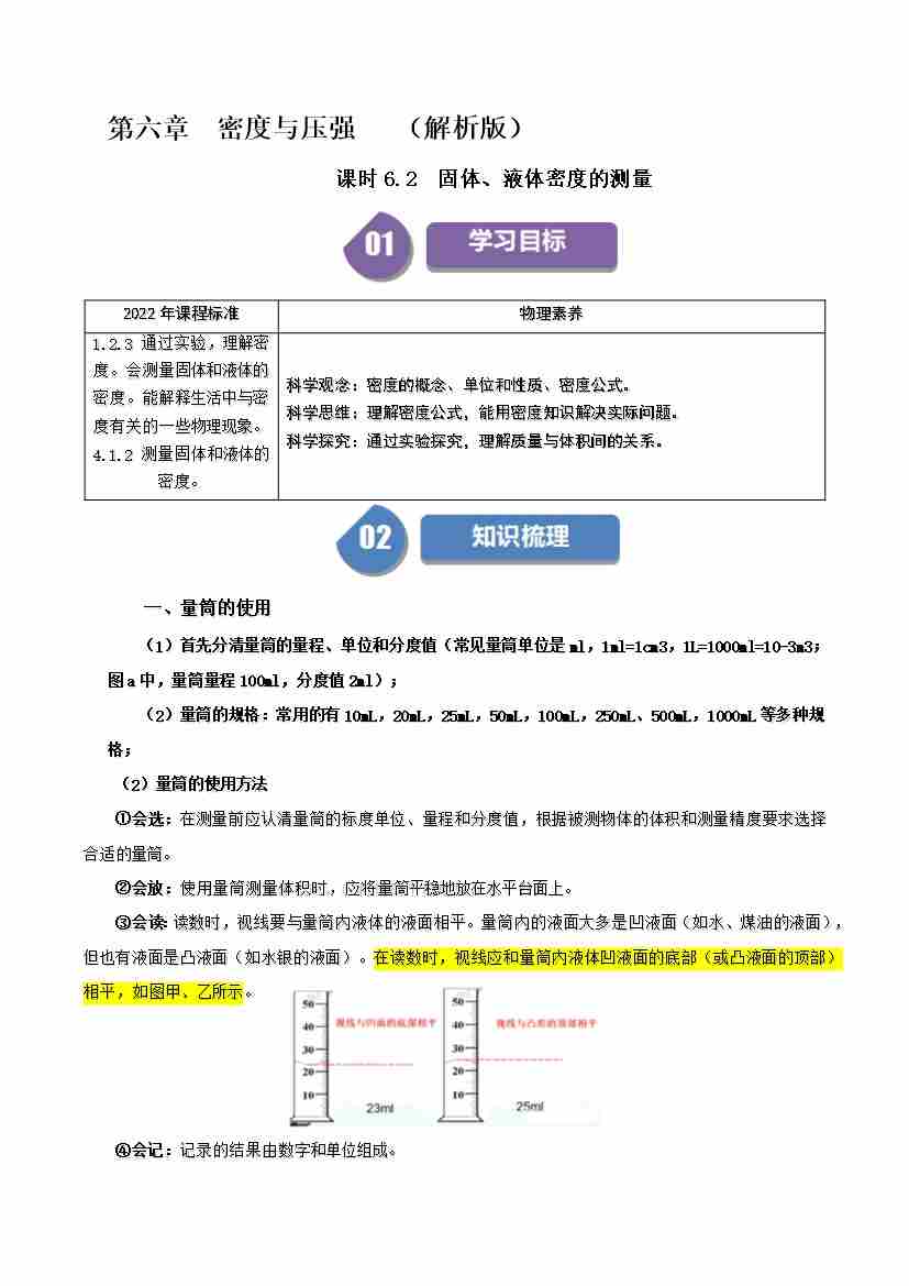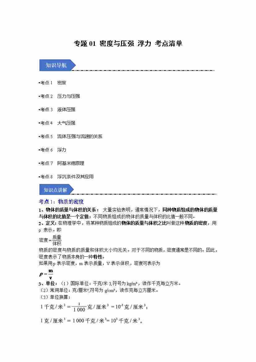 专题01 密度与压强 浮力 (考点清单)(学生版)