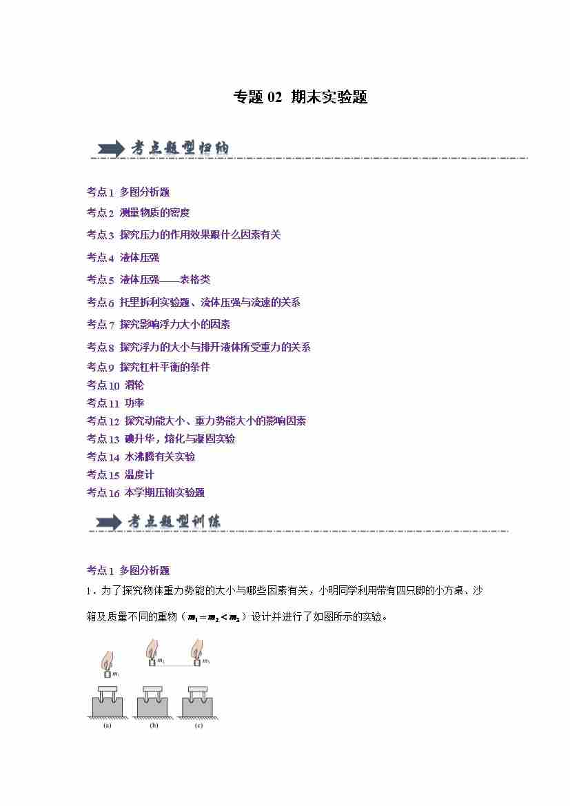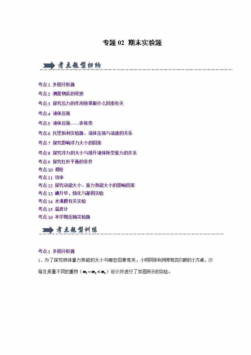 专题02 期末实验题(十二大题型)(考题猜想)(教师版)
