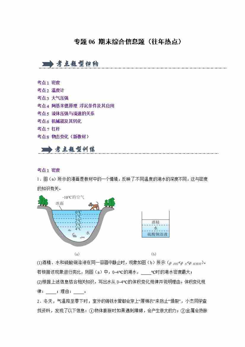 专题06 期末综合信息题(往年热点)(八大题型)(考题猜想)(学生版)