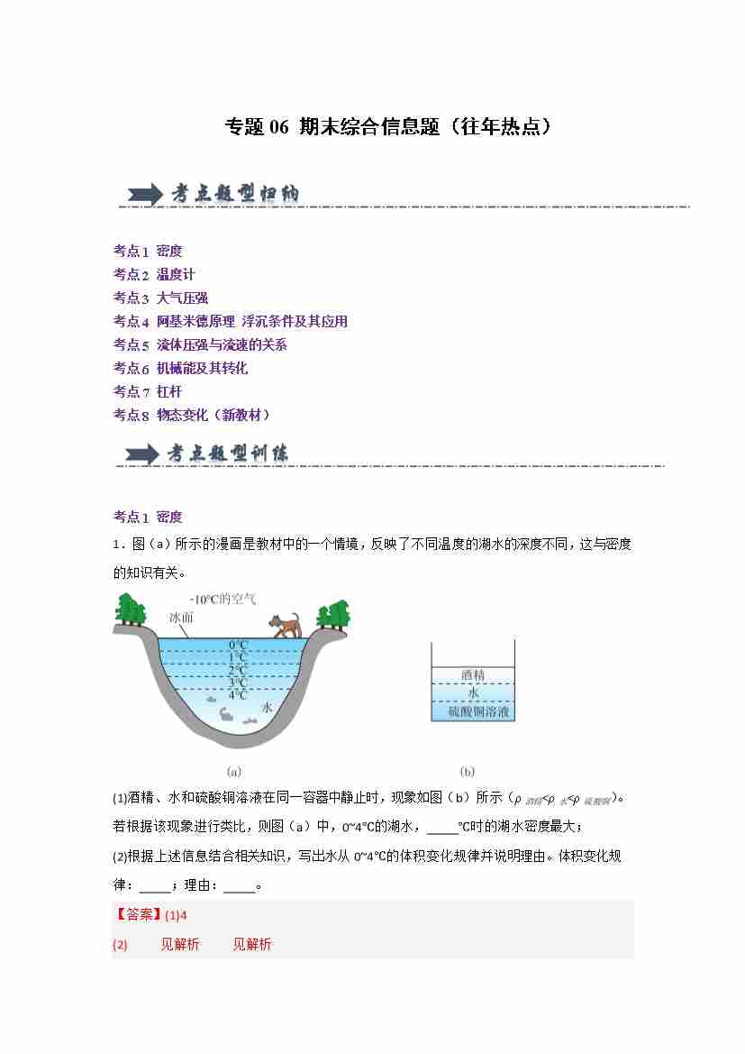 专题06 期末综合信息题(往年热点)(八大题型)(考题猜想)(教师版)