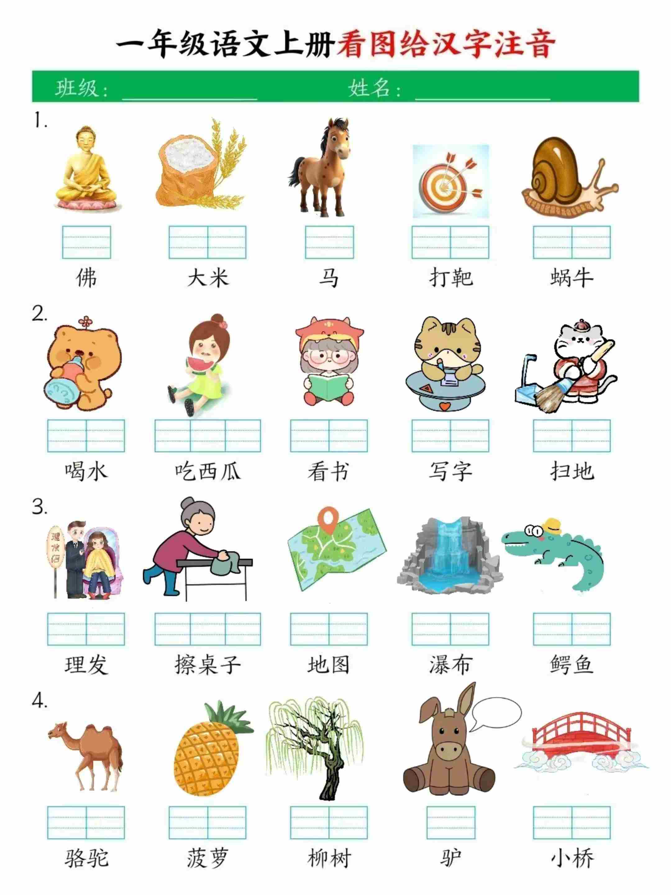 一年级(上)语文 看图写拼音专项练习