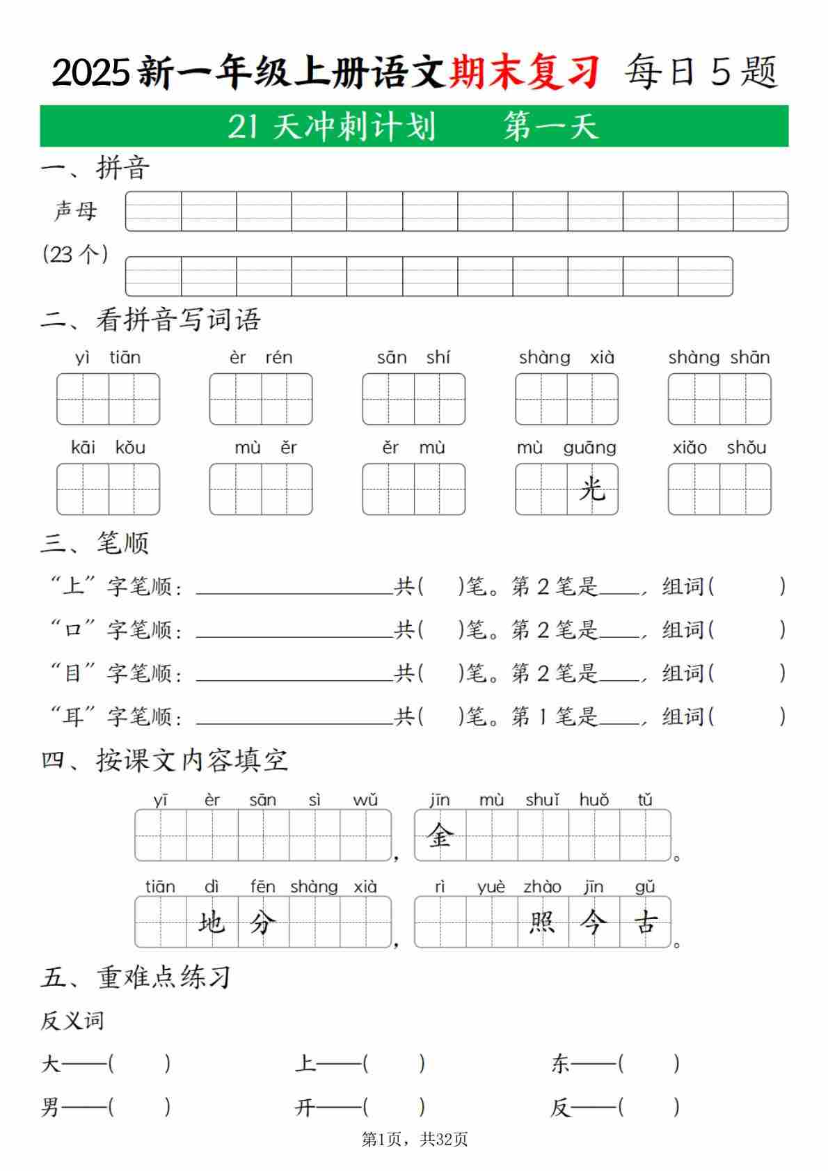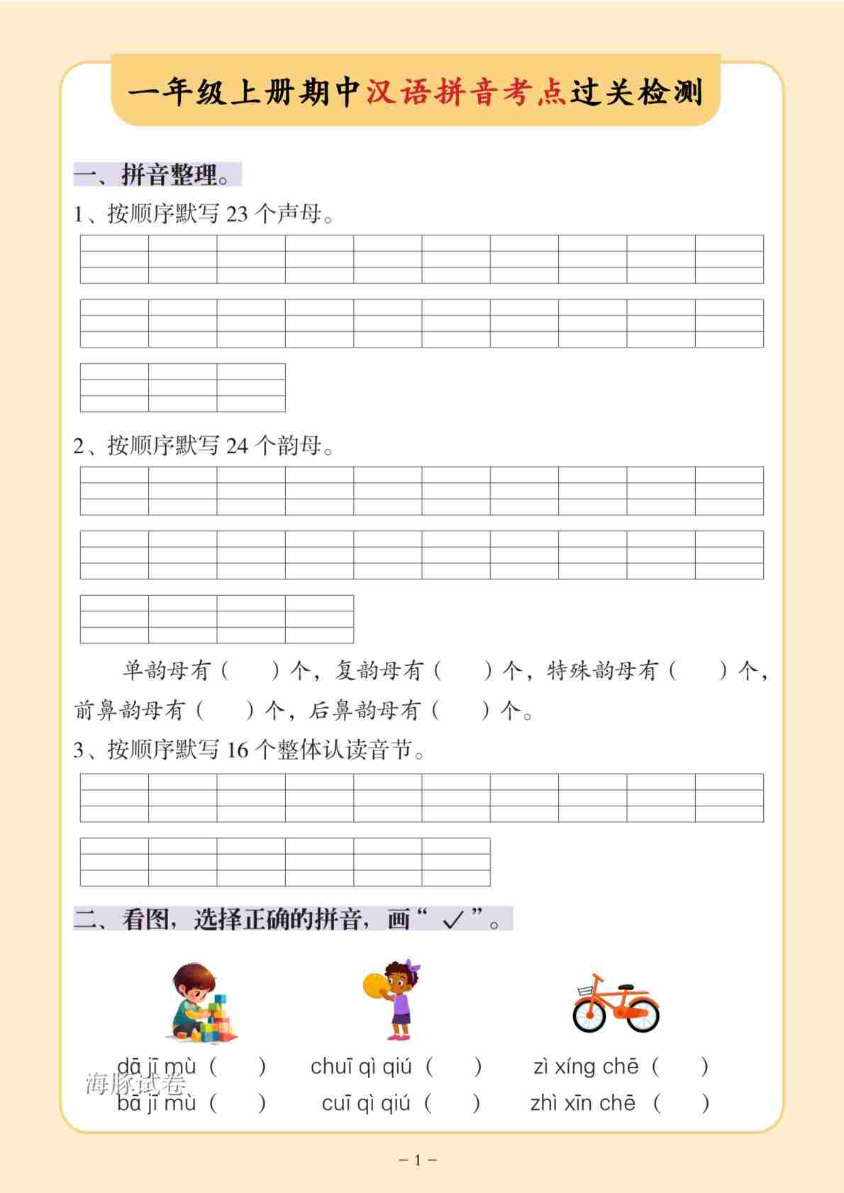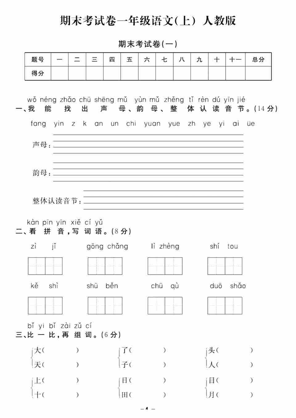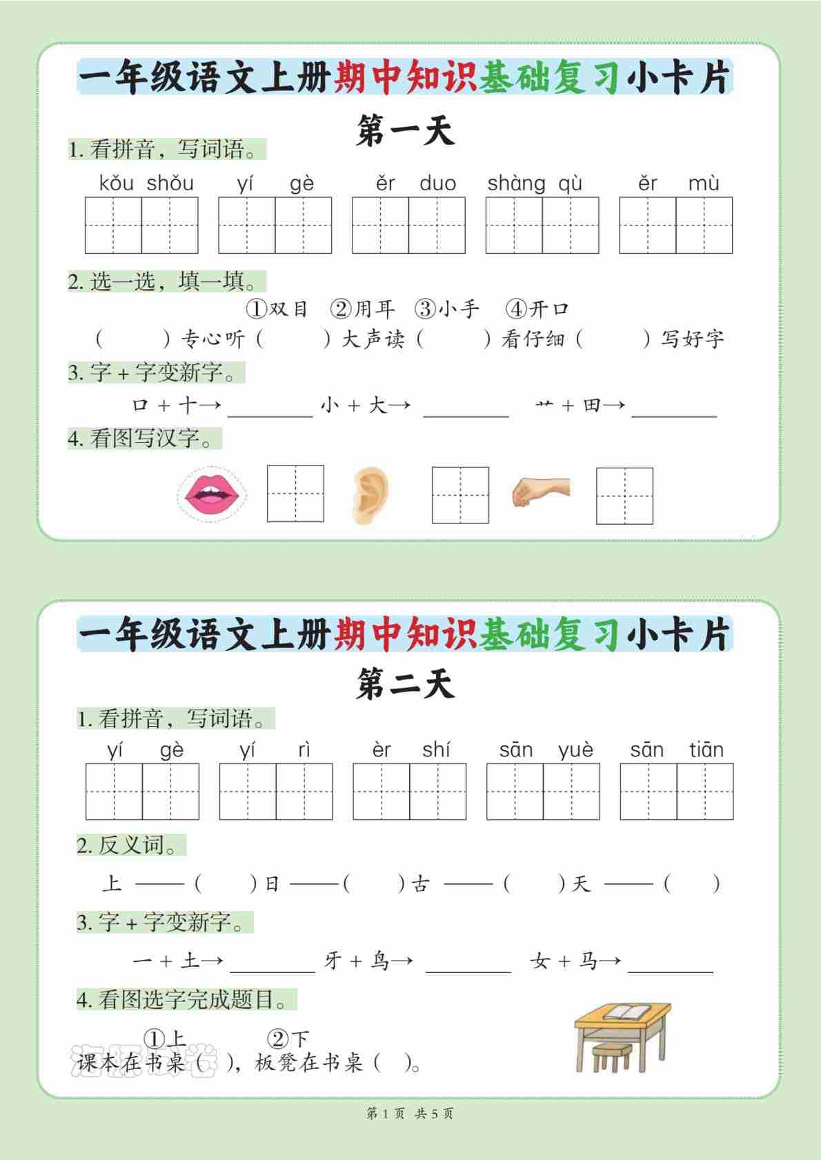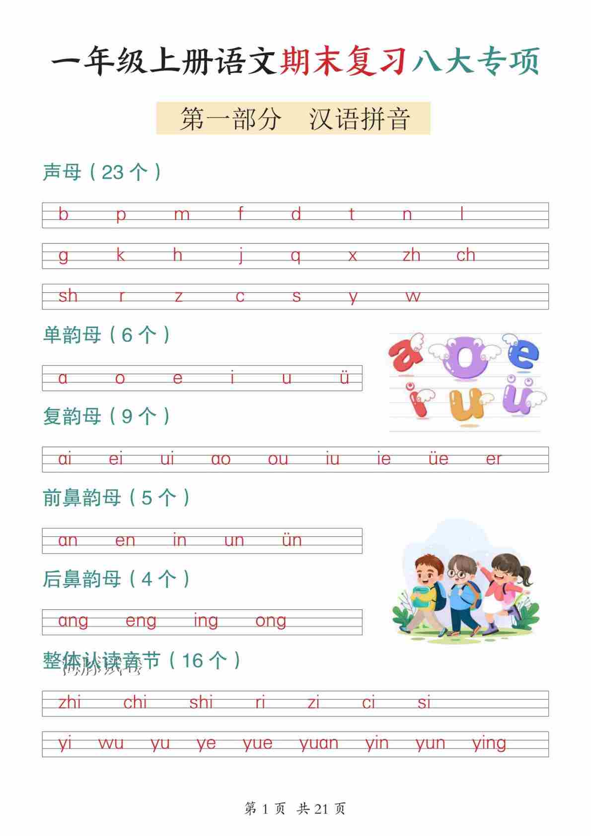 一年级(上)语文 1-4单元期中常考重点知识汇总