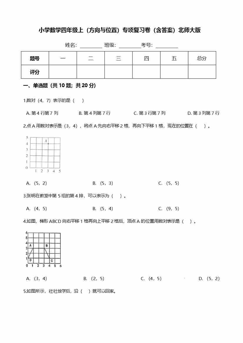 【期末专项培优】四上数学(方向与位置)专项复习卷(含答案)北师大版