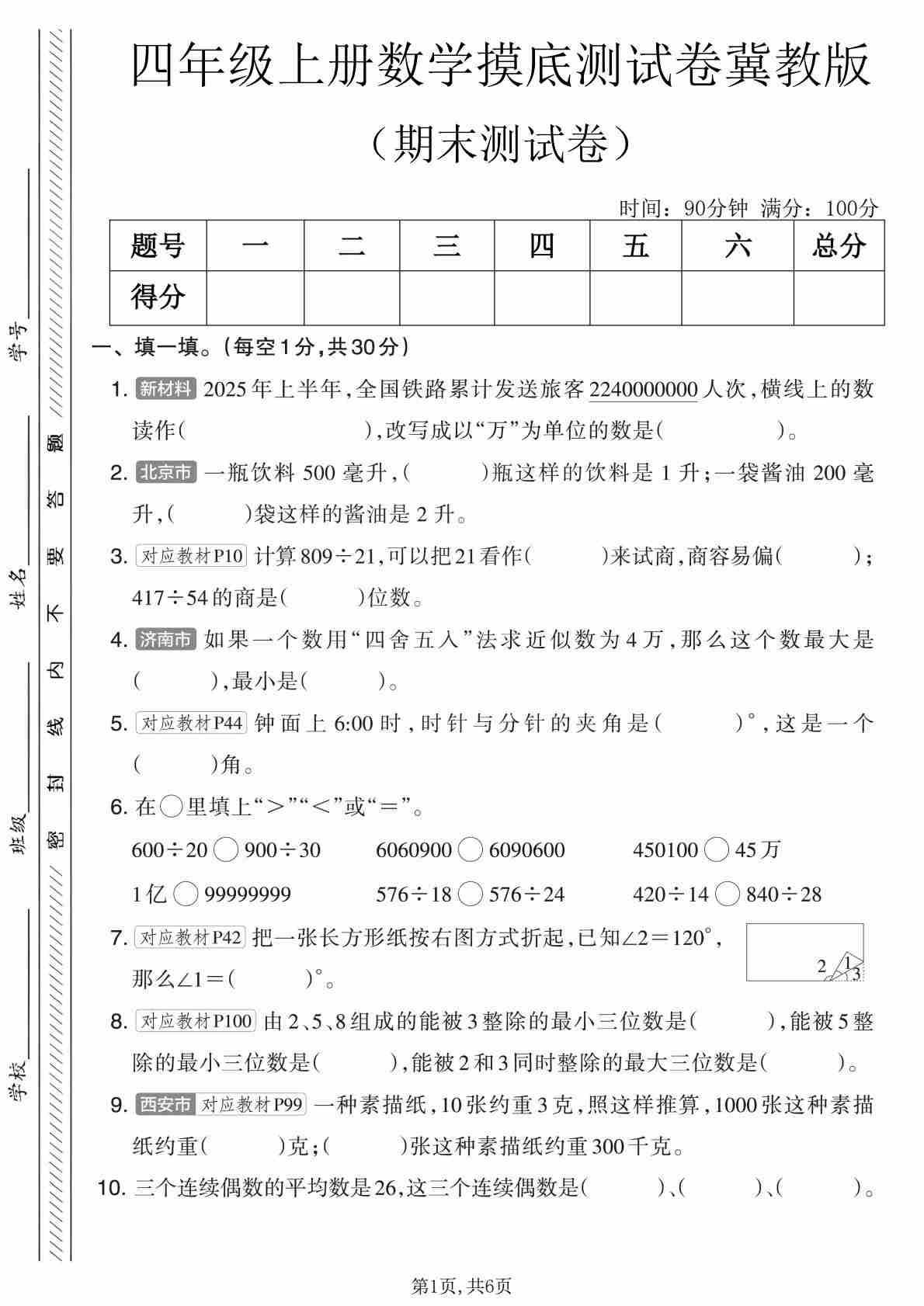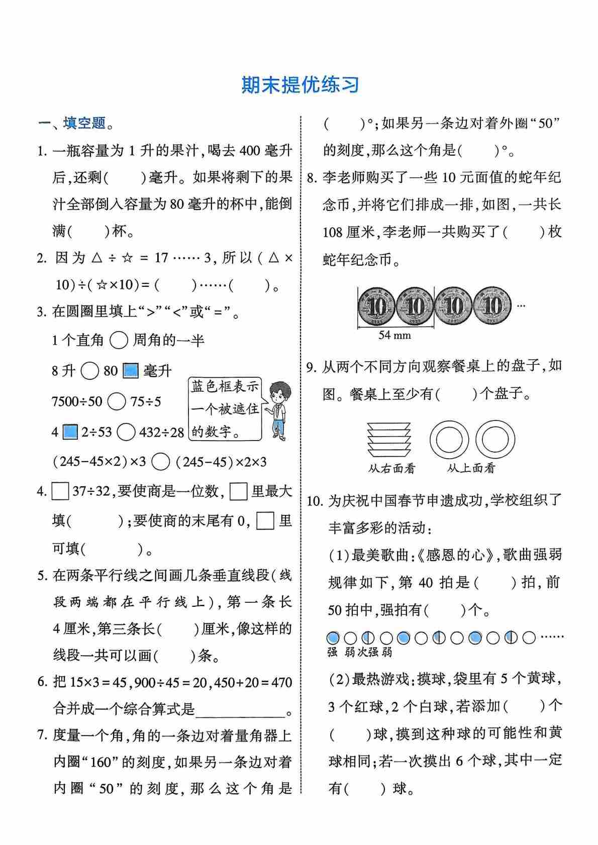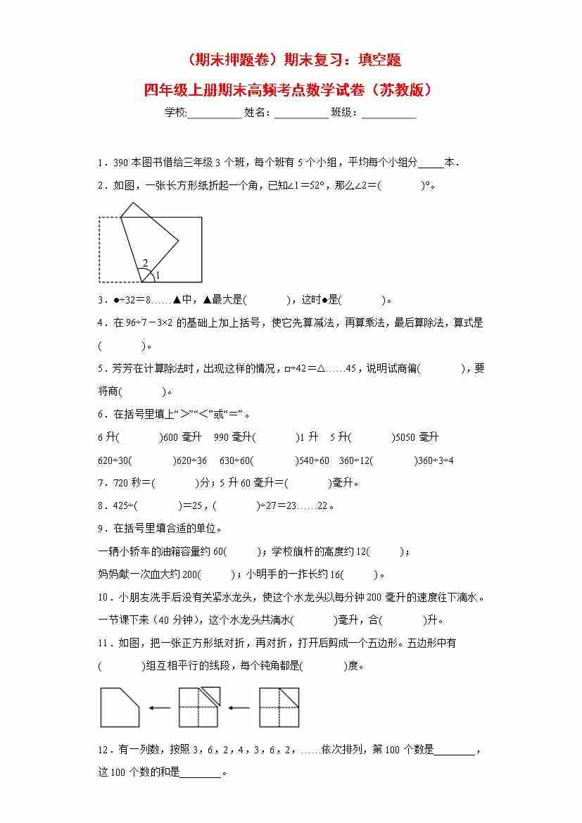 四上数学(苏教版)期末复习·终极压轴版·预测命题空白