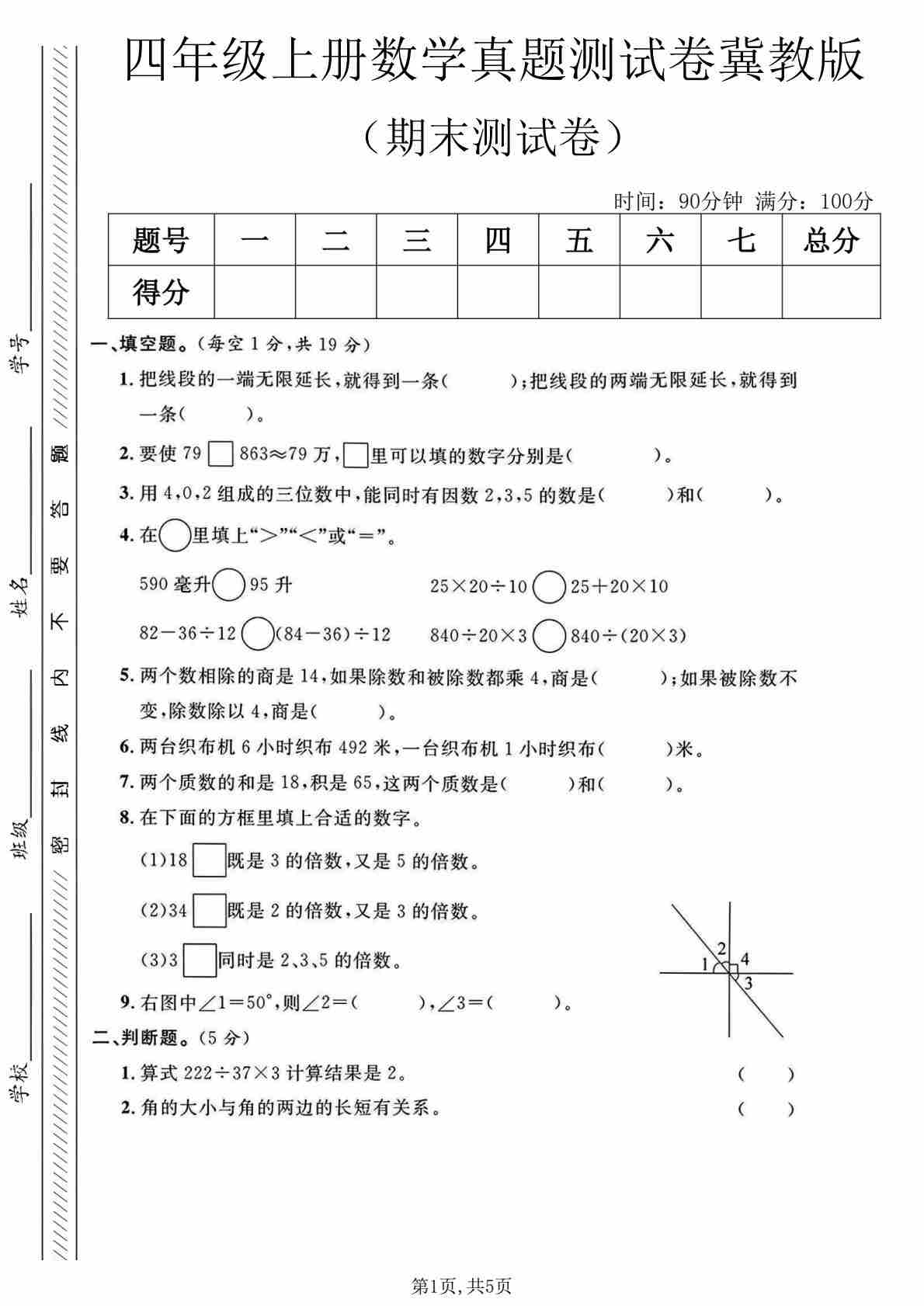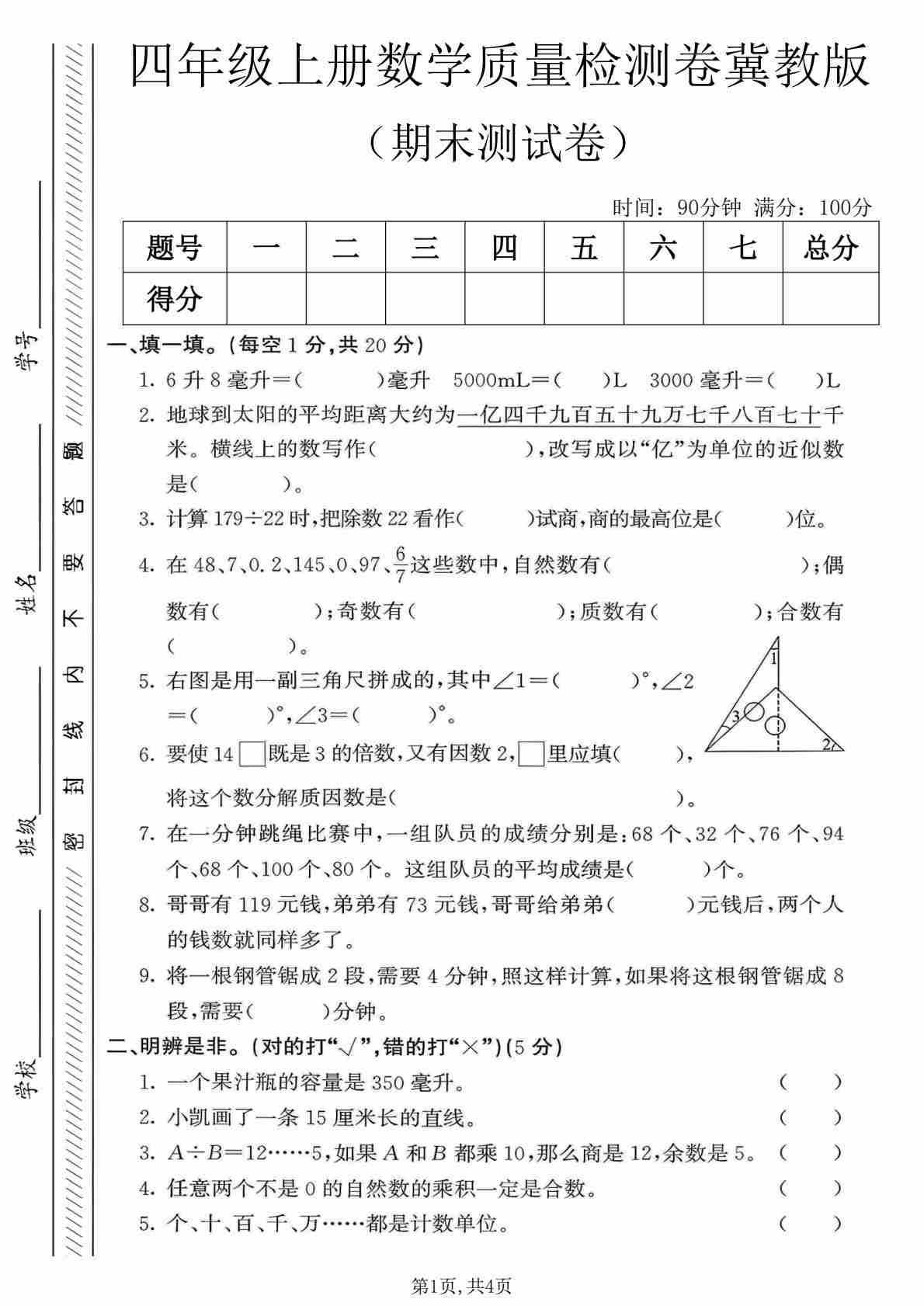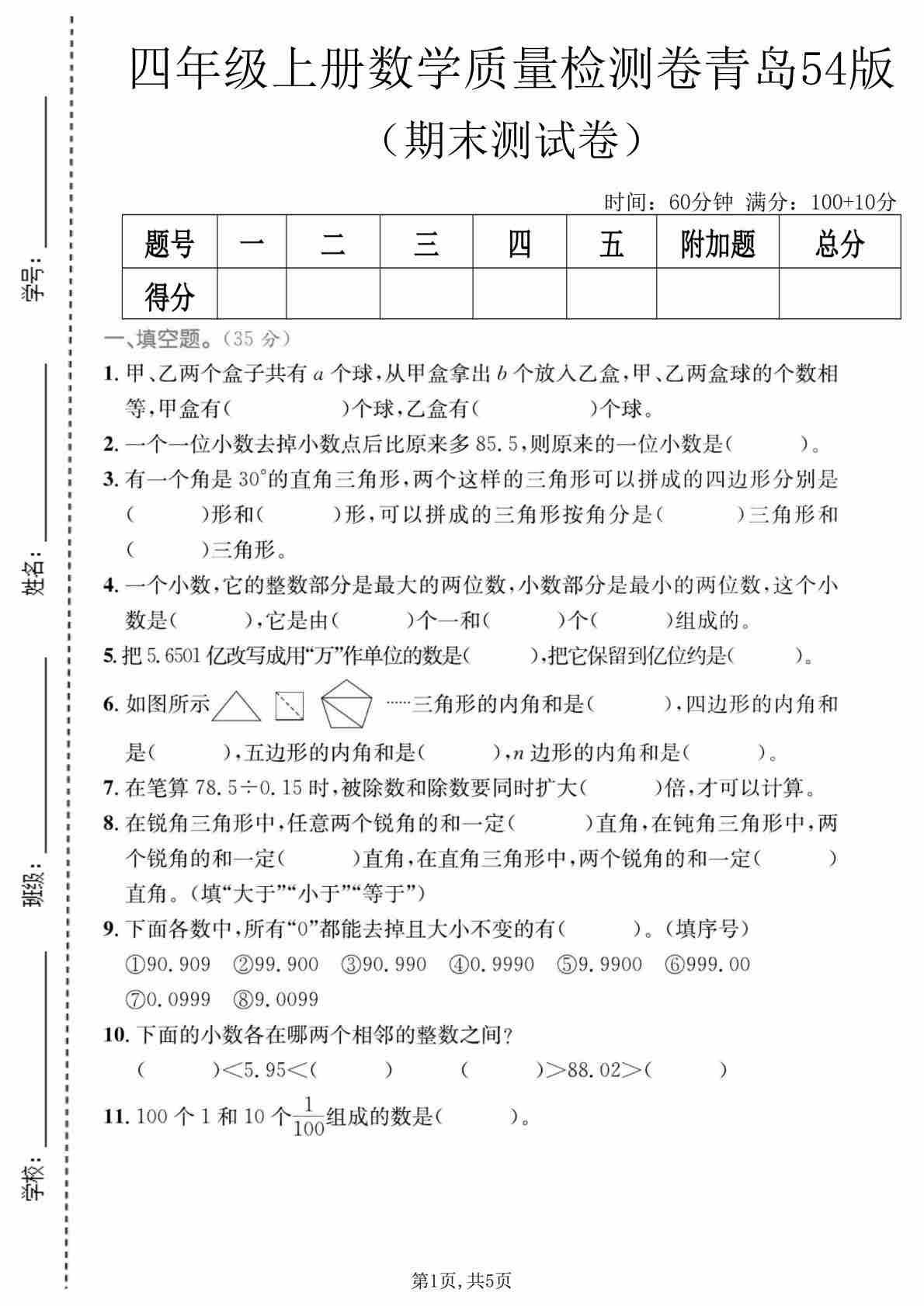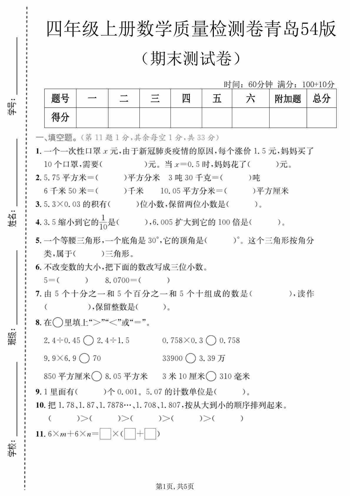 四年级(上)数学期末质量检测卷1《青岛54版》