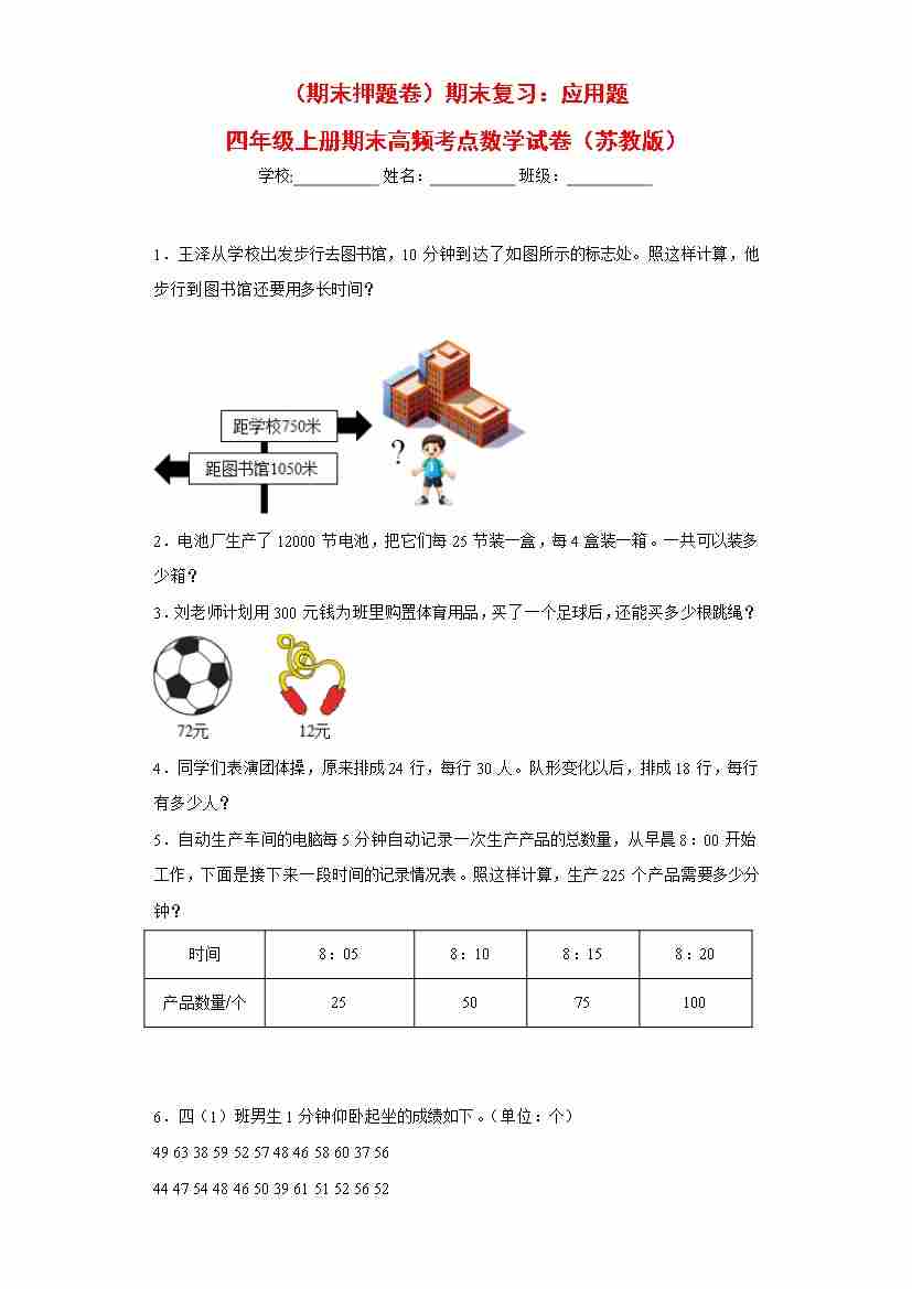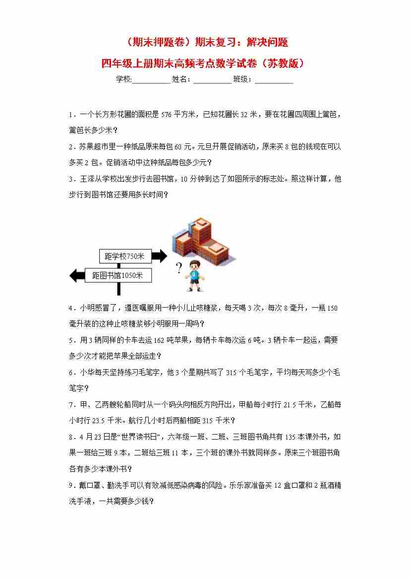 期末复习:应用题(试题)四年级上册期末高频考点数学试卷(苏教版)