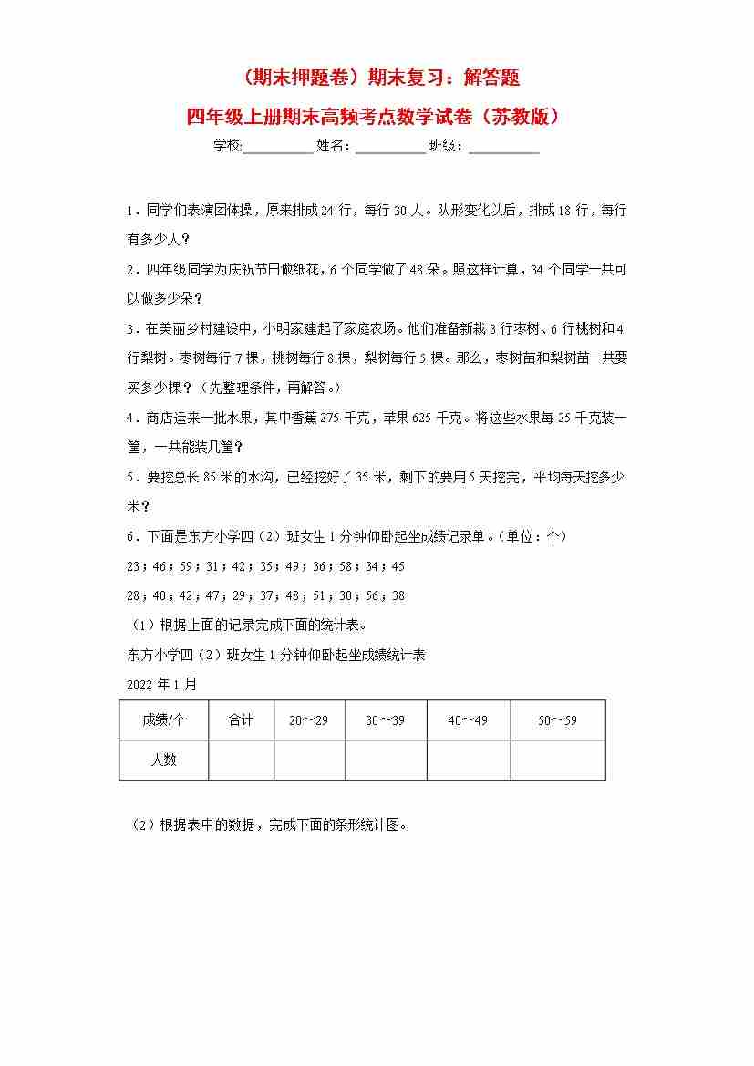 期末复习:解答题(试题)四年级上册期末高频考点数学试卷(苏教版)