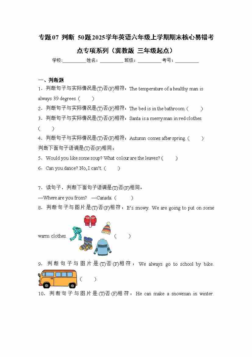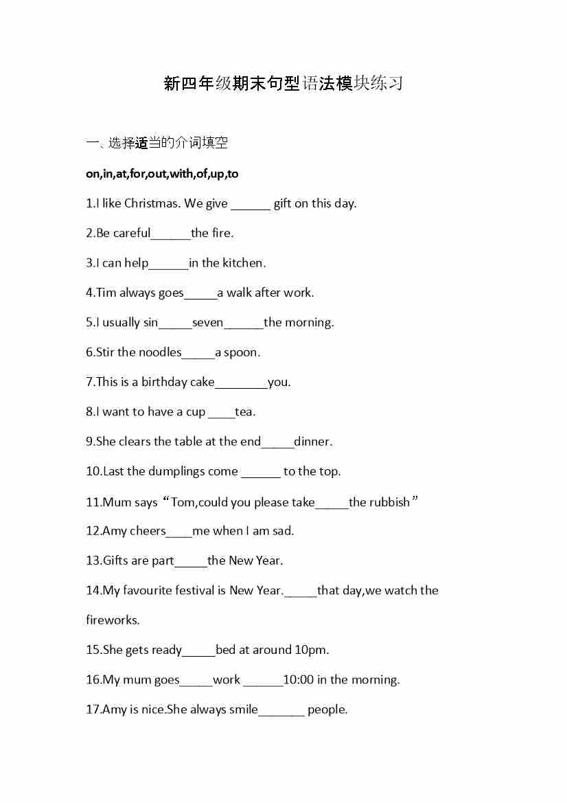 期末句型语法(专项训练)-2025-2026学年教科版英语四年级上册