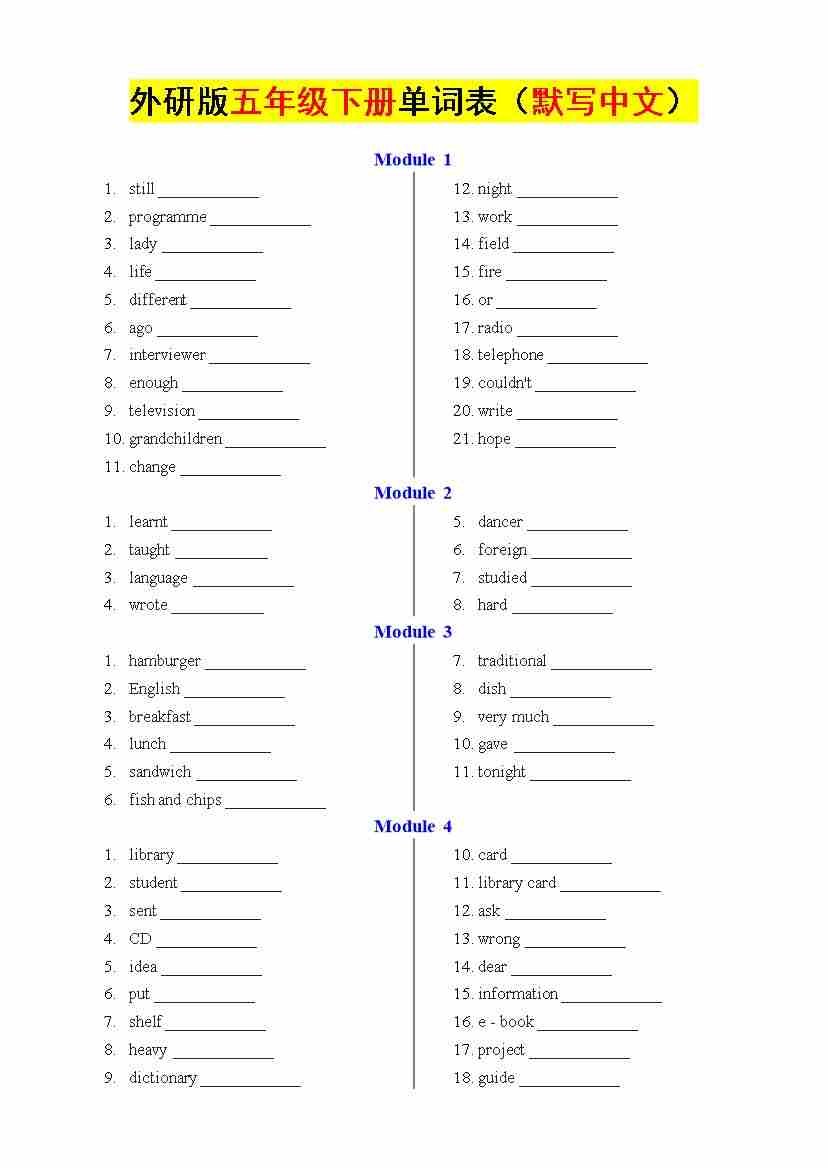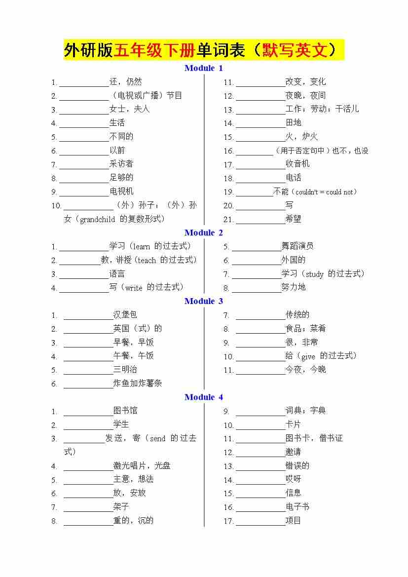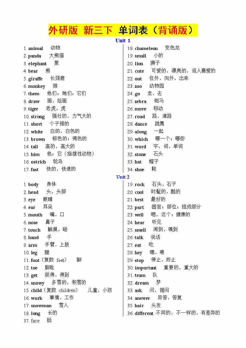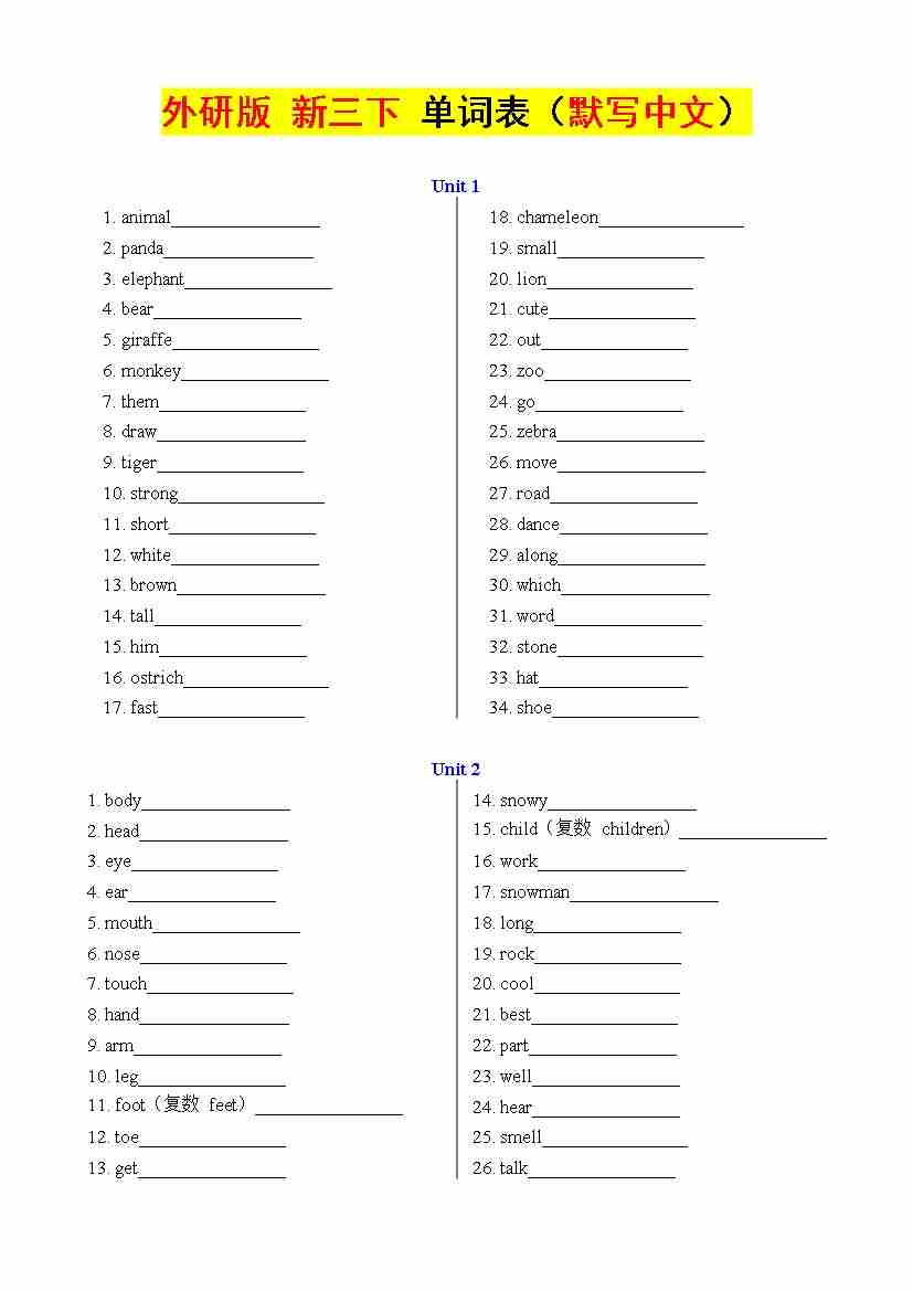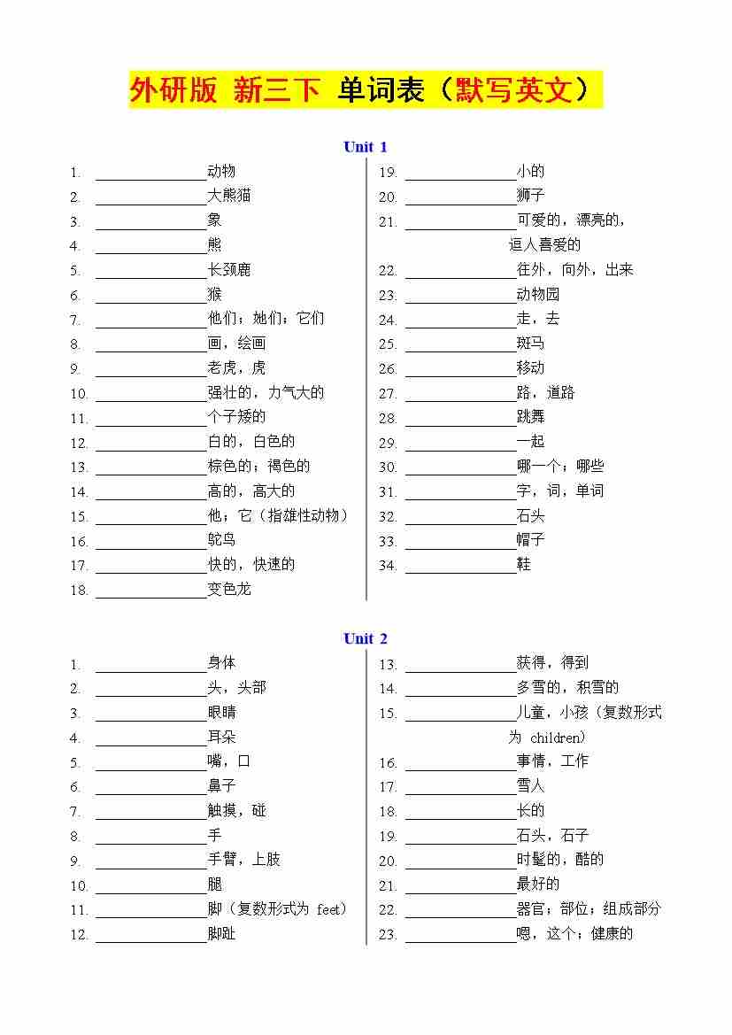 2025年春 外研版 新三下 单词表(默写中文)docx