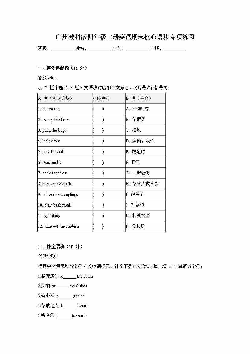 期末核心语块(专项训练)-2025-2026学年教科版英语四年级上册