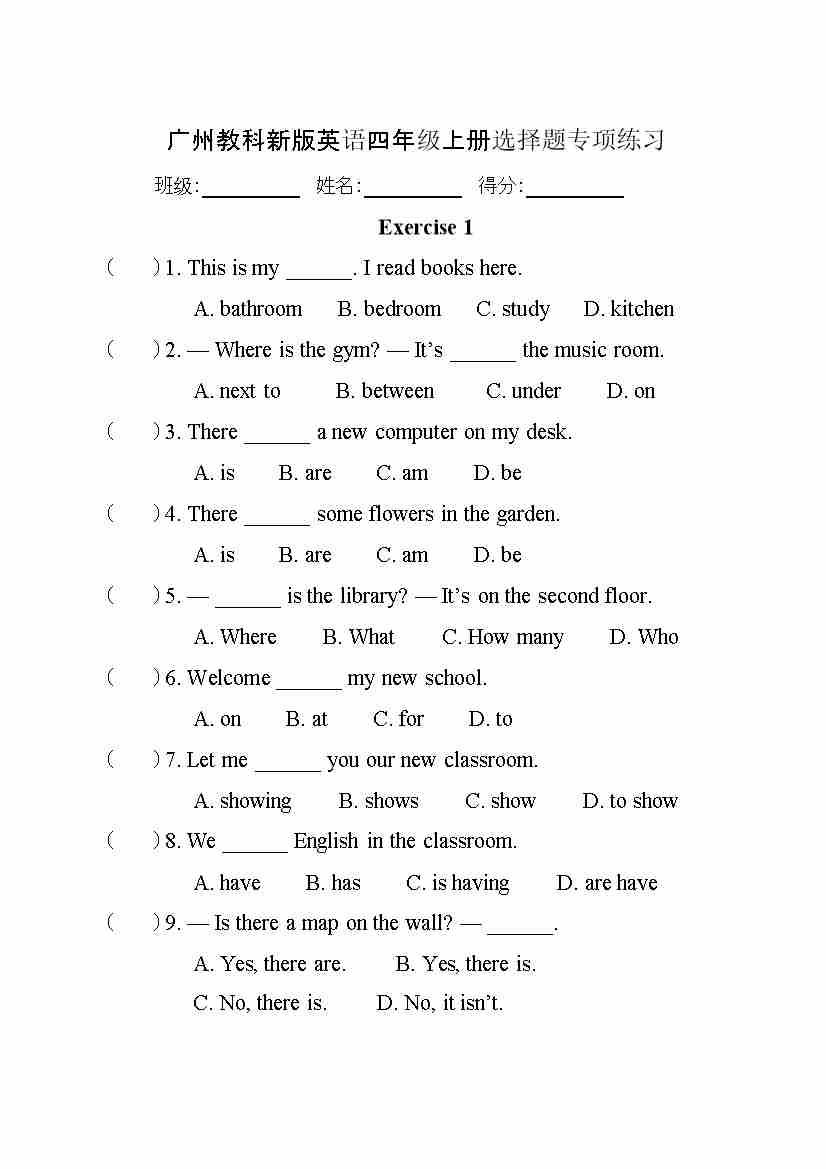 期末选择题(专项训练)-2025-2026学年教科版英语四年级上册