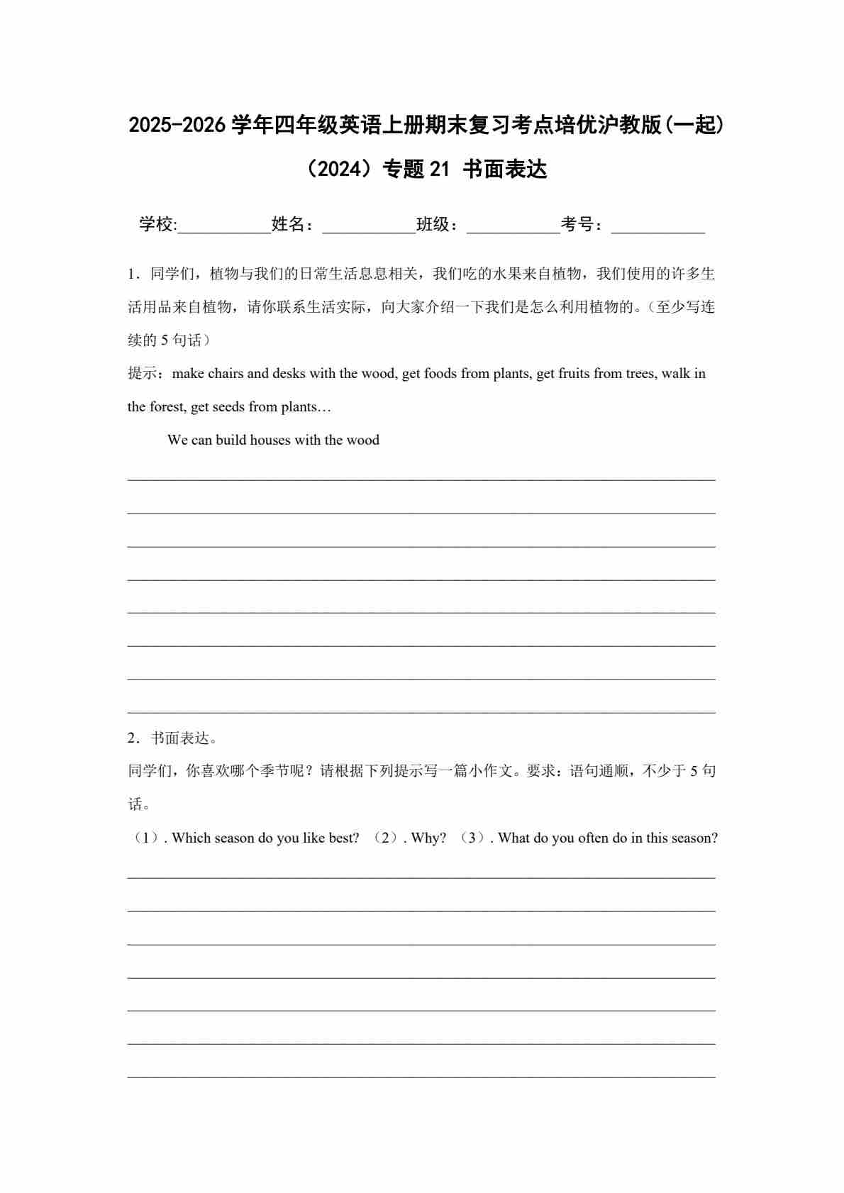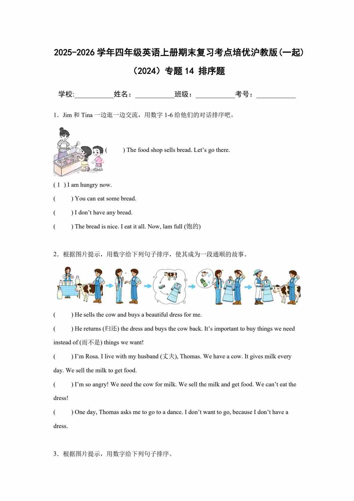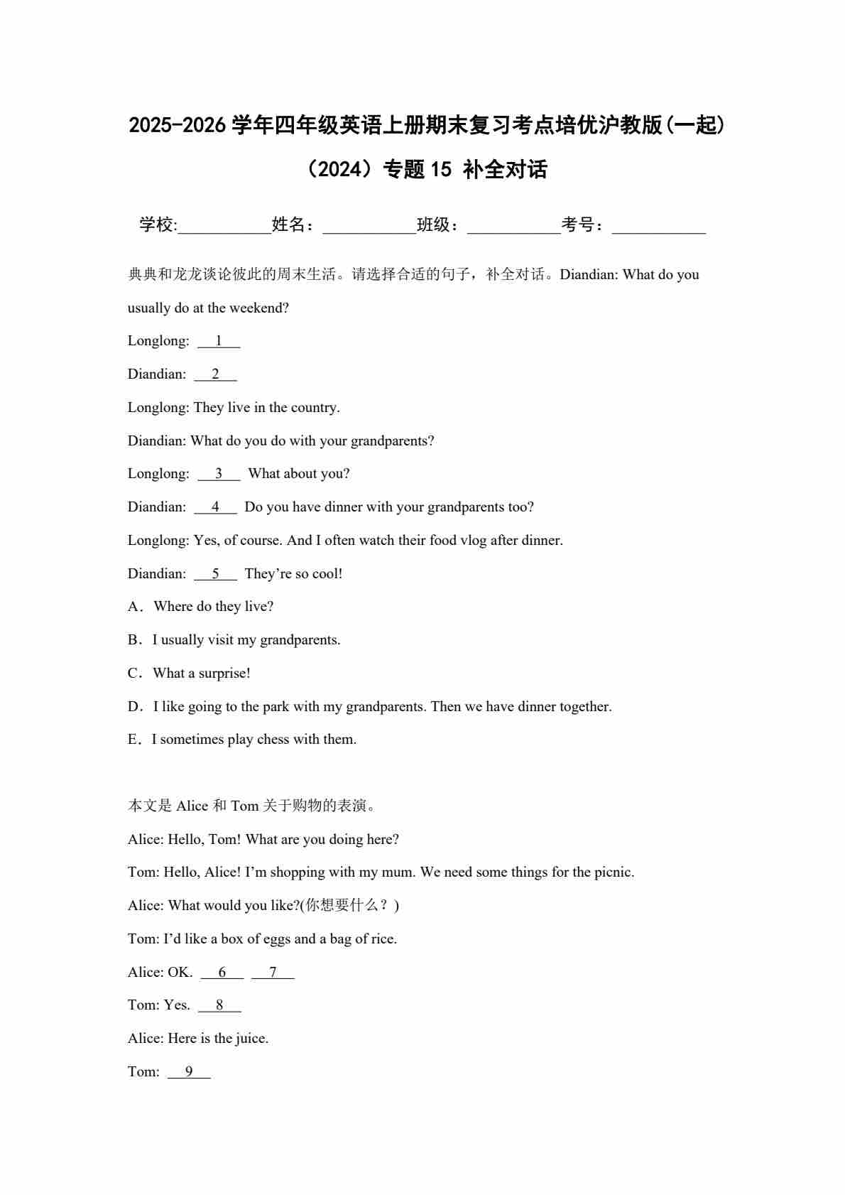 25秋四上沪教 15 补全对话