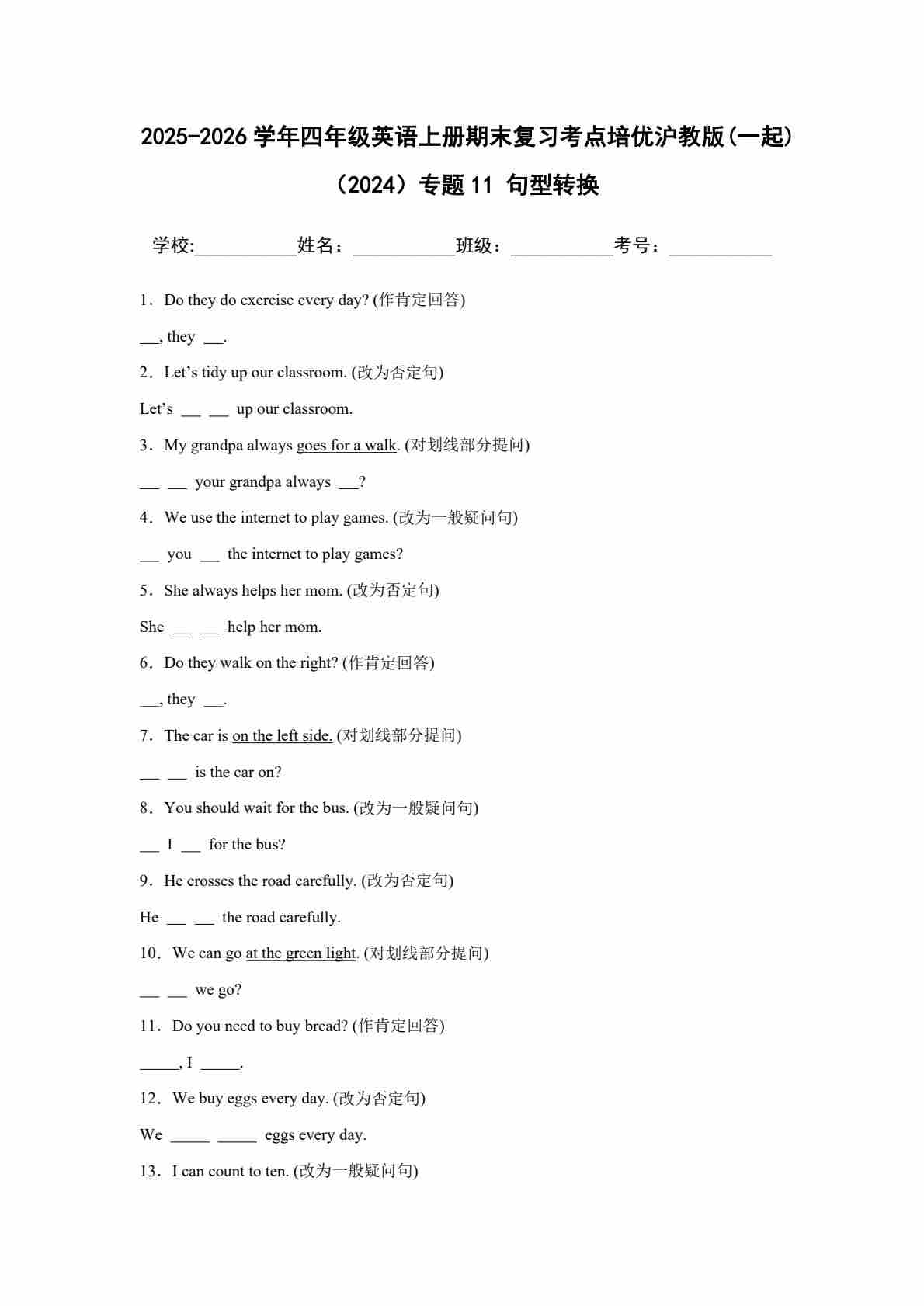 25秋四上沪教 11 句型转换