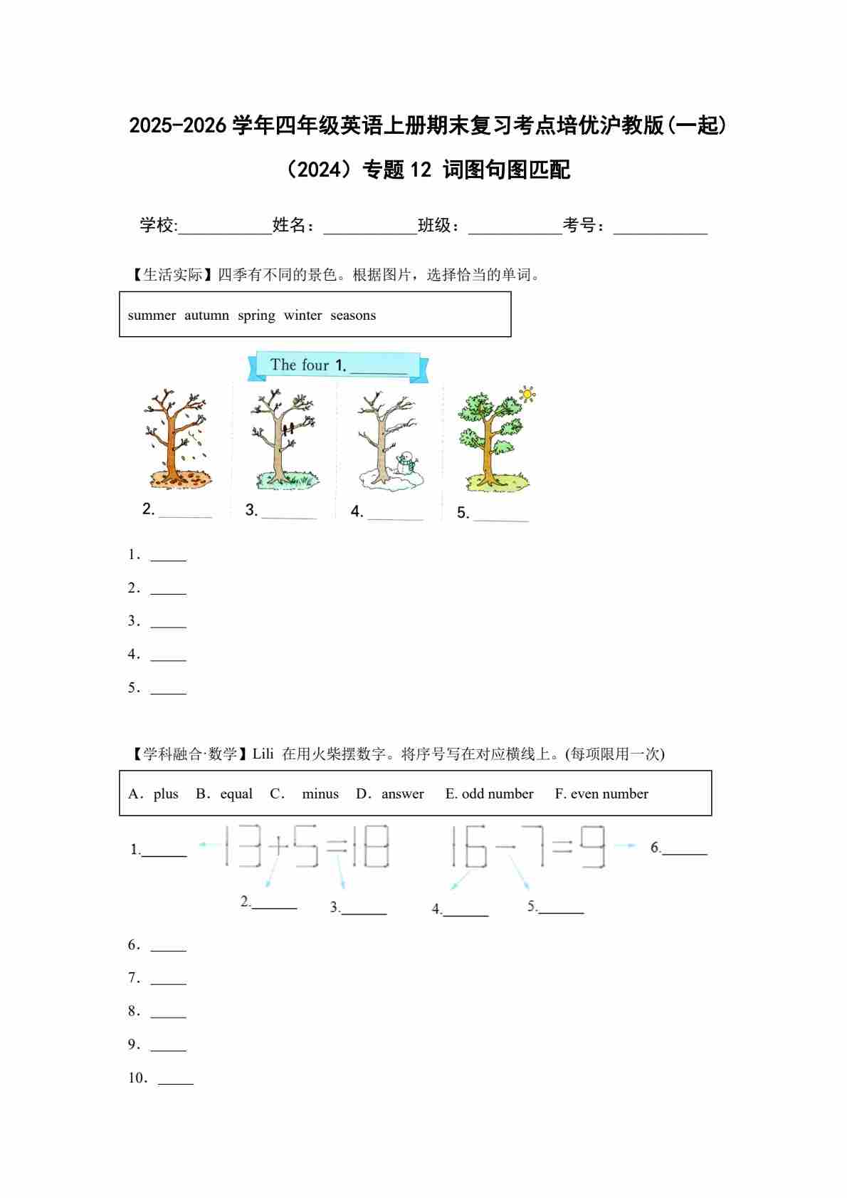 25秋四上沪教 12 词图句图匹配