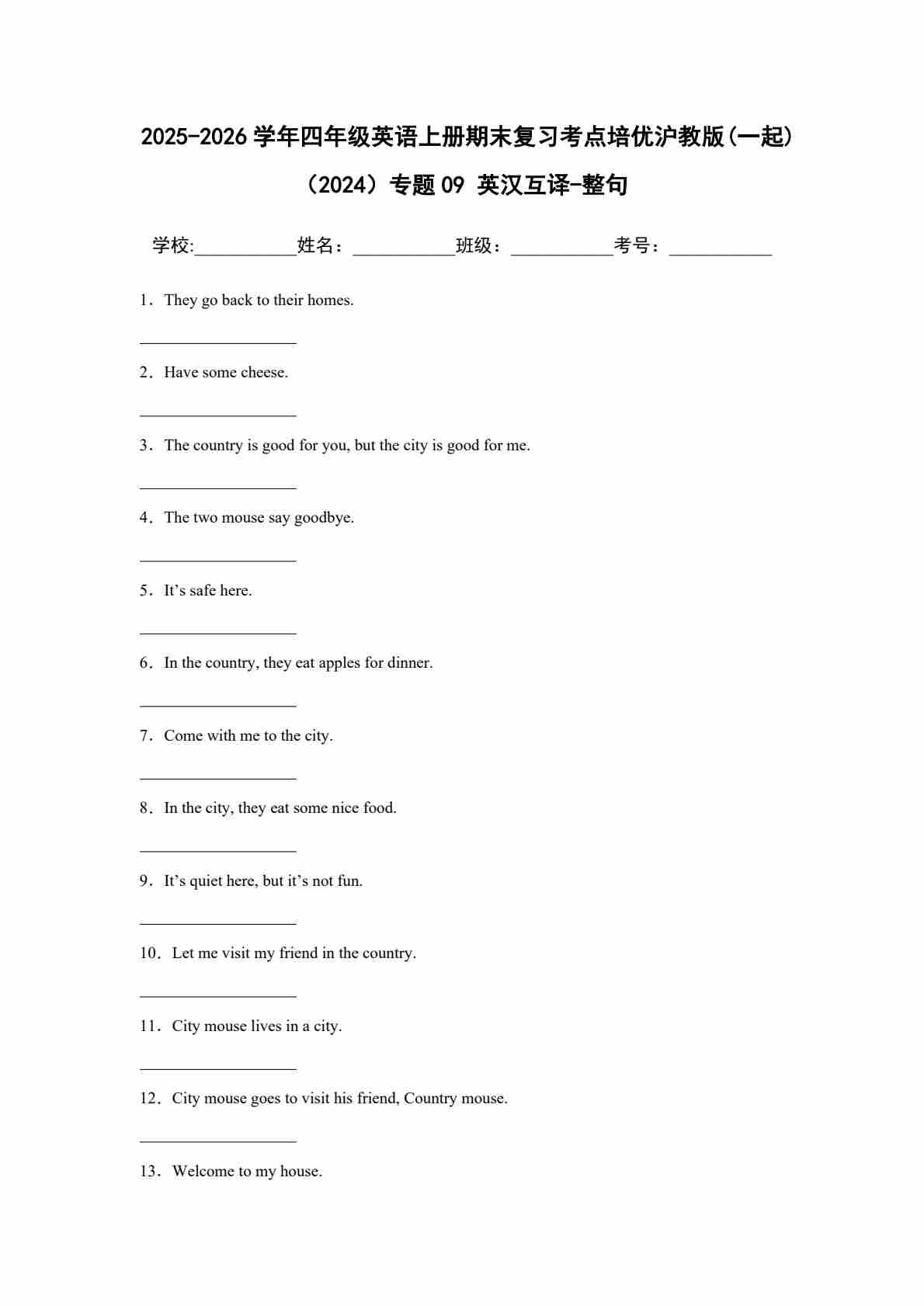 25秋四上沪教 09 英汉互译-整句