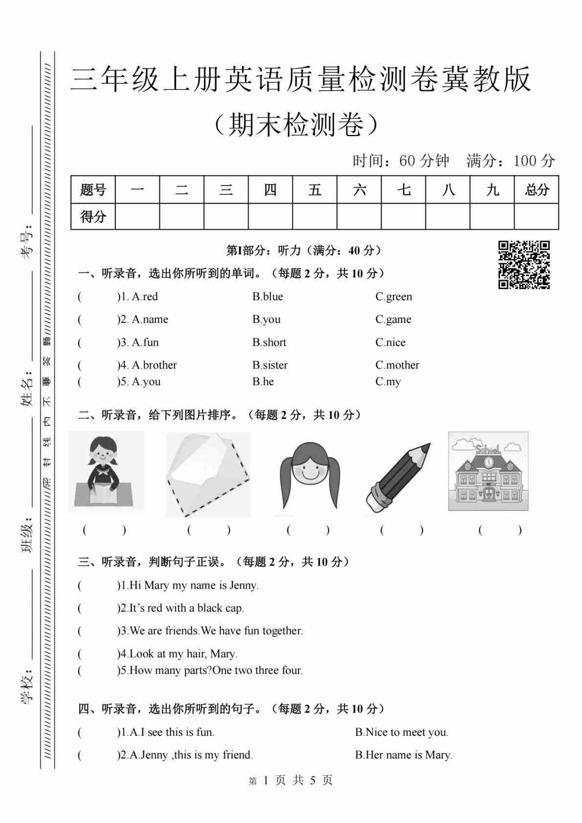 五年级(上)英语 期末拔尖检测卷《人教版PEP》3