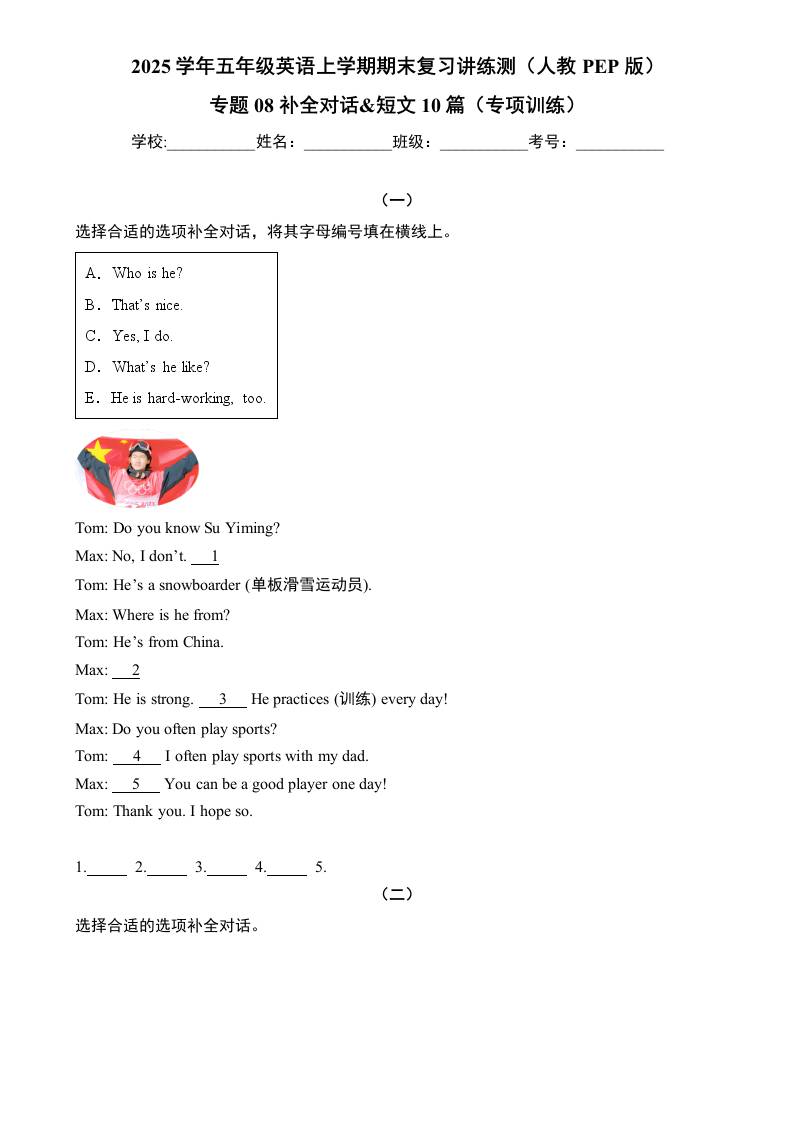 专题08补全对话&短文10篇(专项训练)五年级英语上学期期末复习讲练测(人教PEP版)