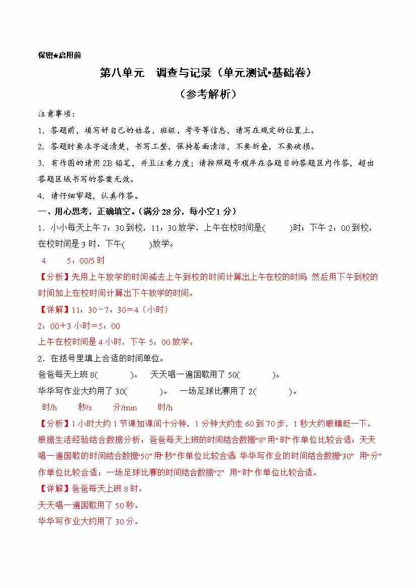 第八单元 调查与记录(单元测试 基础卷) (参考解析)