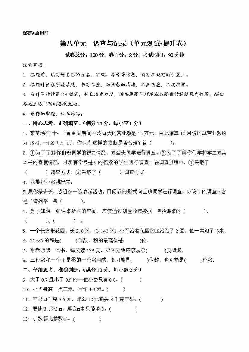 第八单元 调查与记录(单元测试 提升卷) (A4版)
