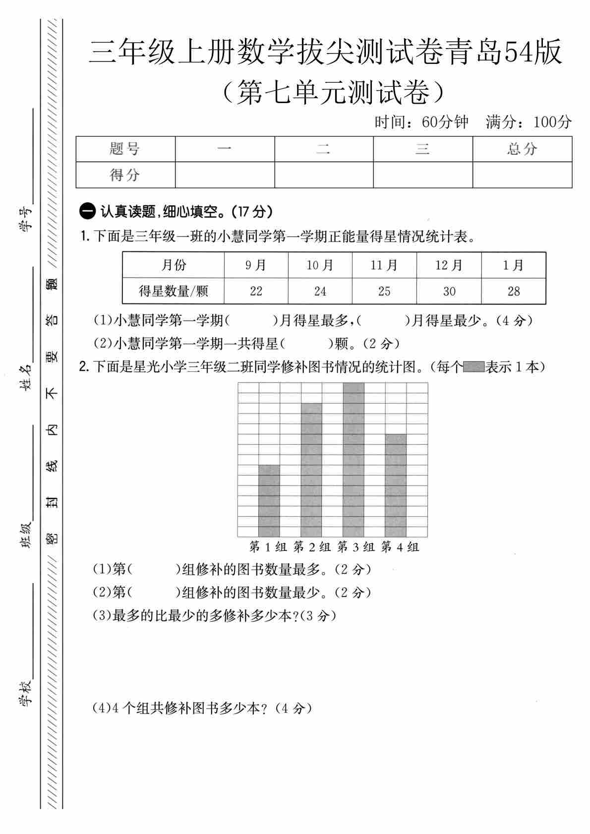 三年级(上)数学 第七单元拔尖测试卷《青岛54版》