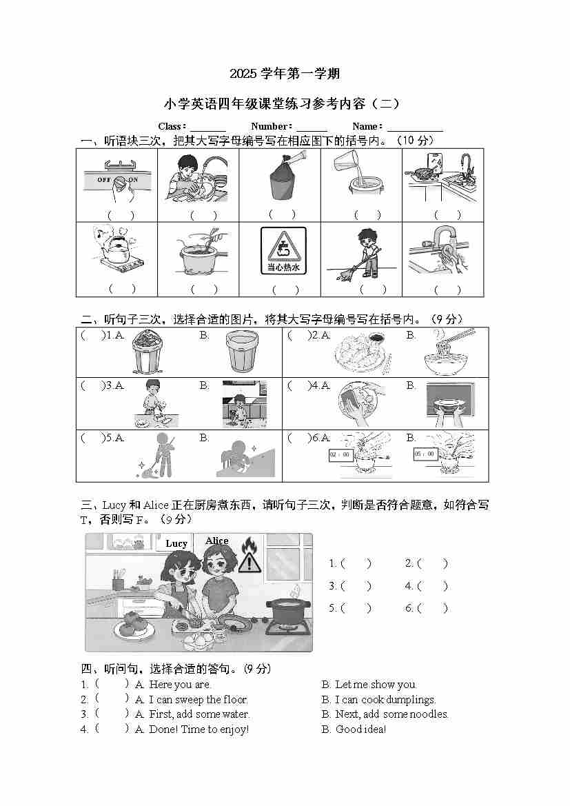 广州教科版2025年第一学期小学英语四年级课堂练习参考内容(二)
