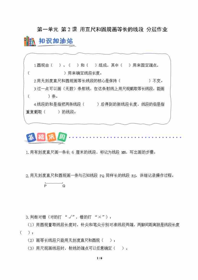 第1单元第2课时 用直尺和圆规画等长的线段(分层作业) 数学苏教版三年级下册(新教材)