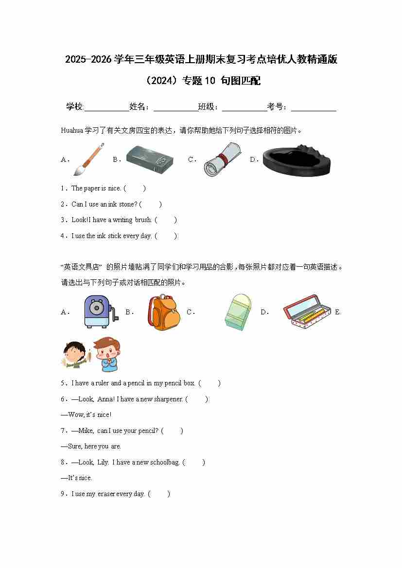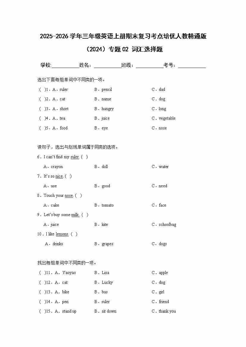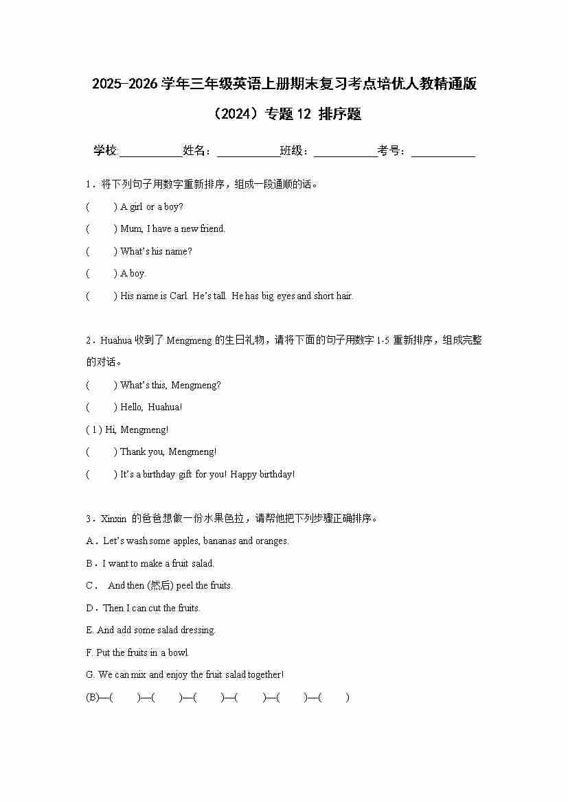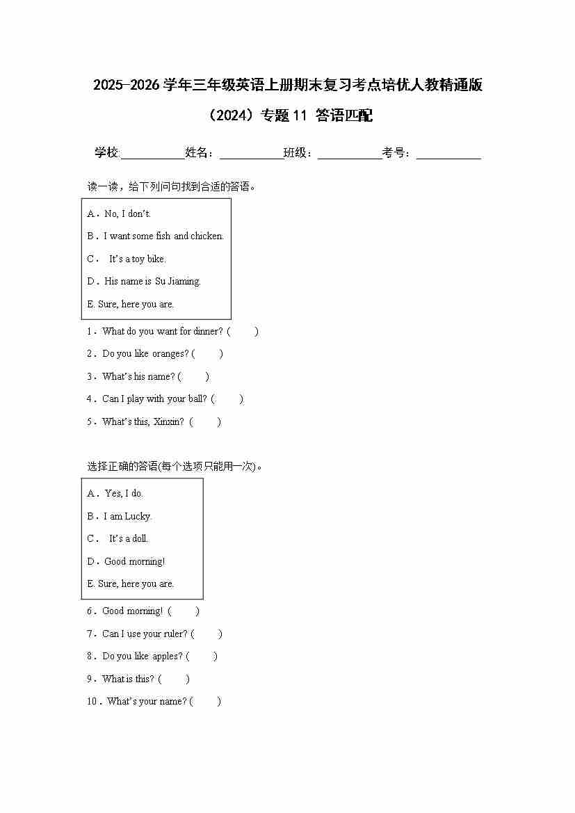 【期末真题】阅读理解15篇人教精通版三年级上册期末专项复习(含答案)