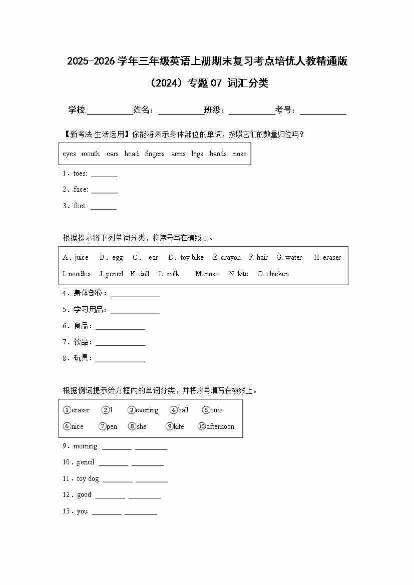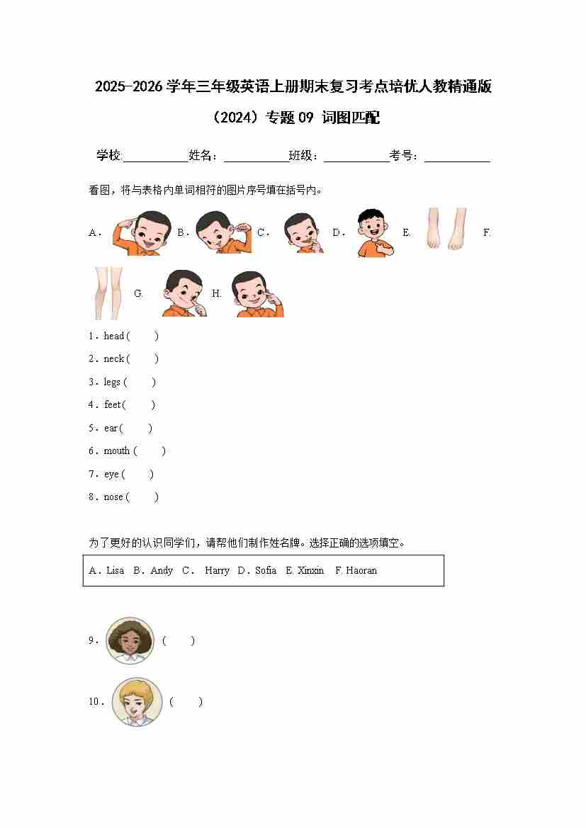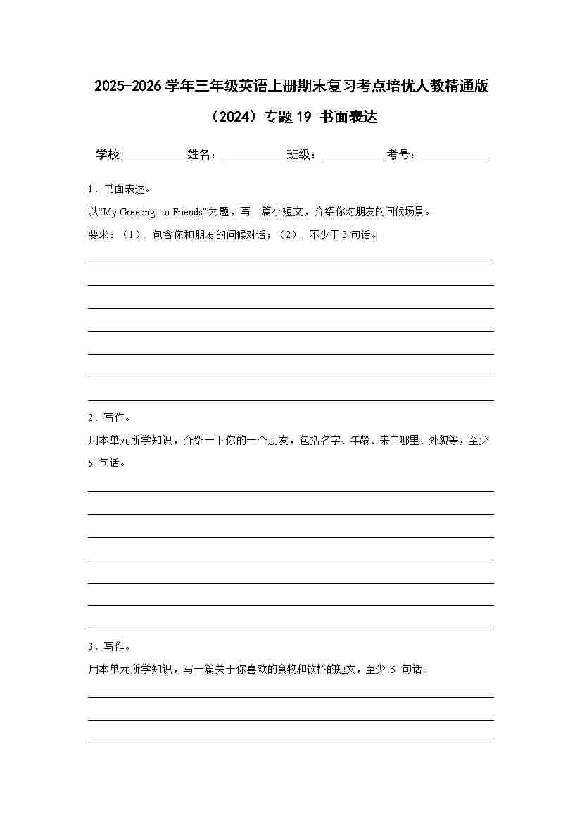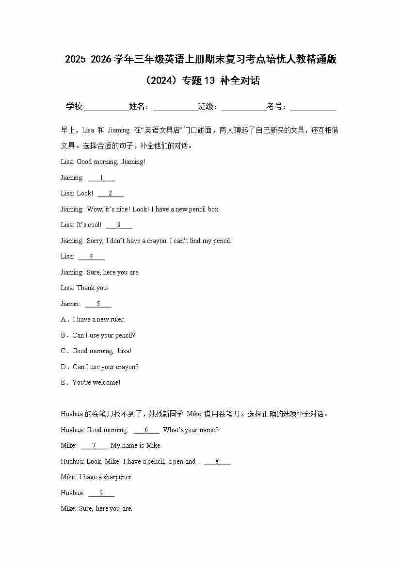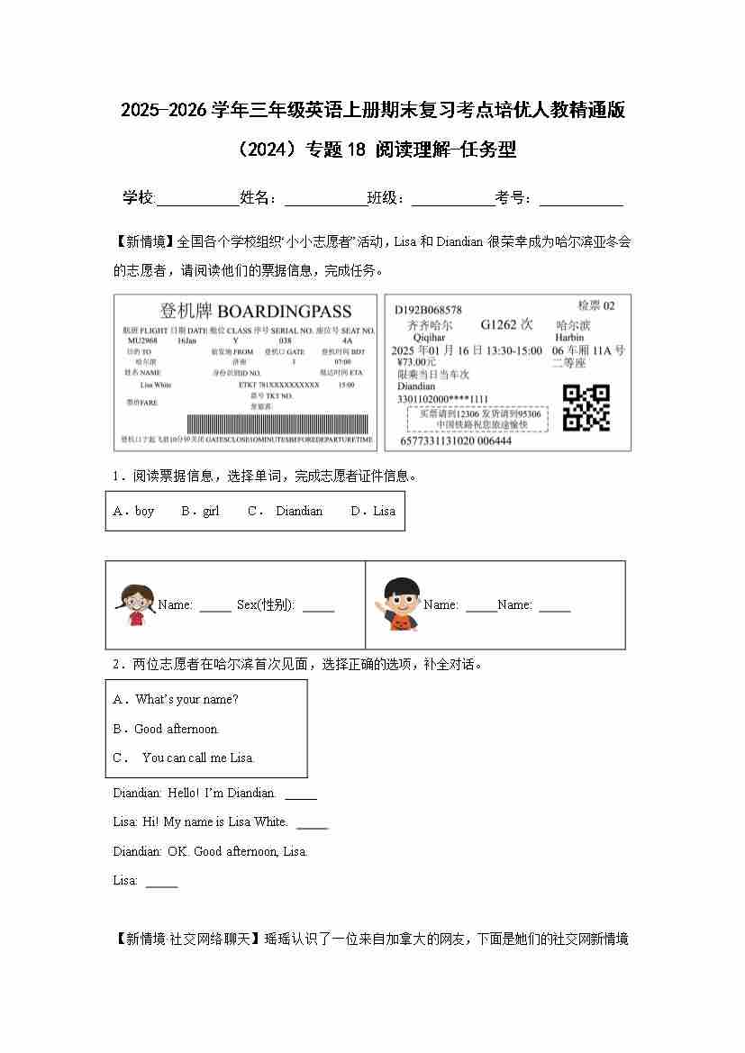【期末真题】阅读理解15篇人教精通版三年级上册期末专项复习(含答案)