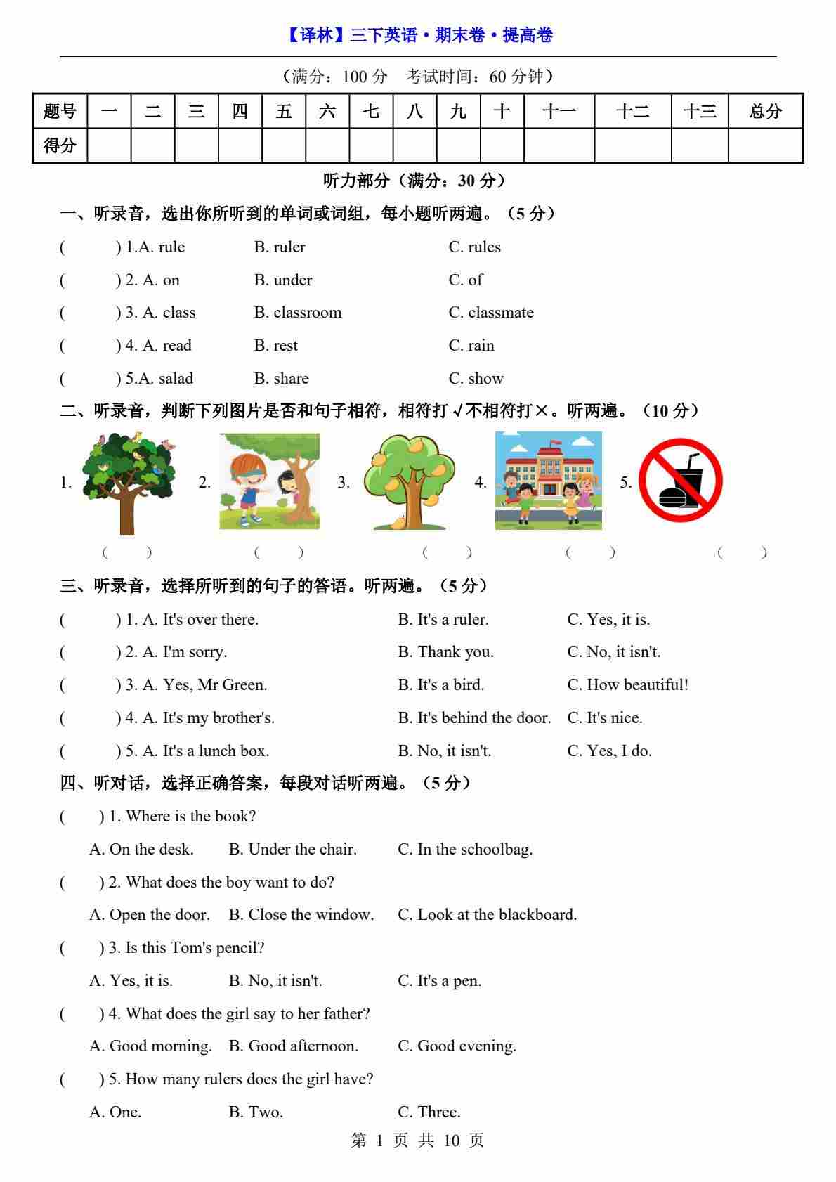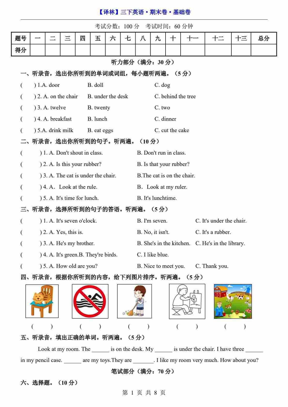 【译林】3下英语期末卷-基础卷-提高卷-听力音频
