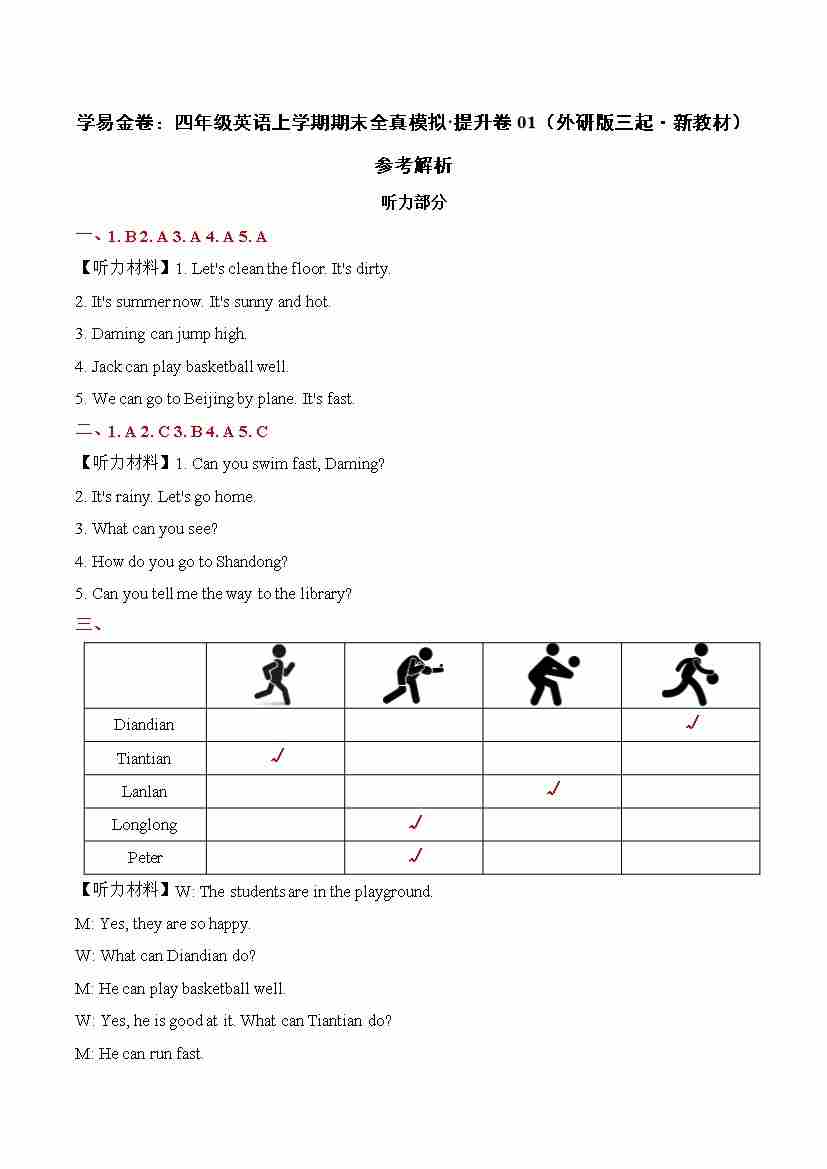25新四上英语外研版期末试卷(提升卷01)(参考解析)