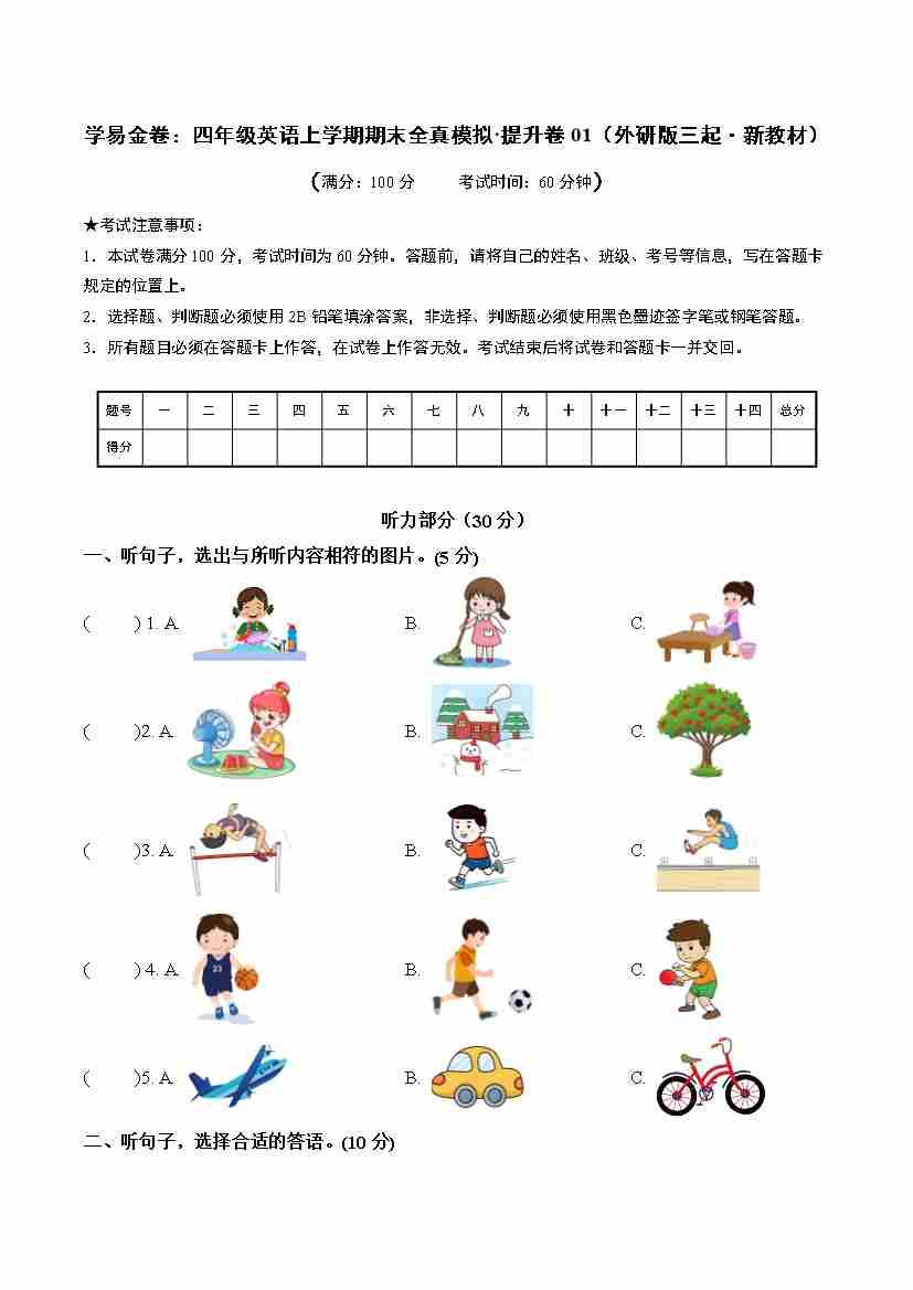 25新四上英语外研版期末试卷(提升卷01)(考试版A4)