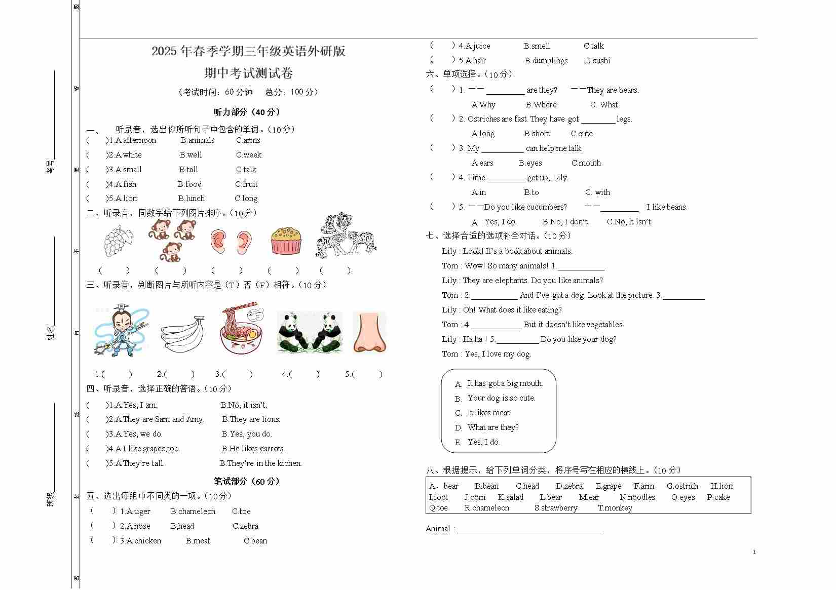 三下英语外研期中考试卷1