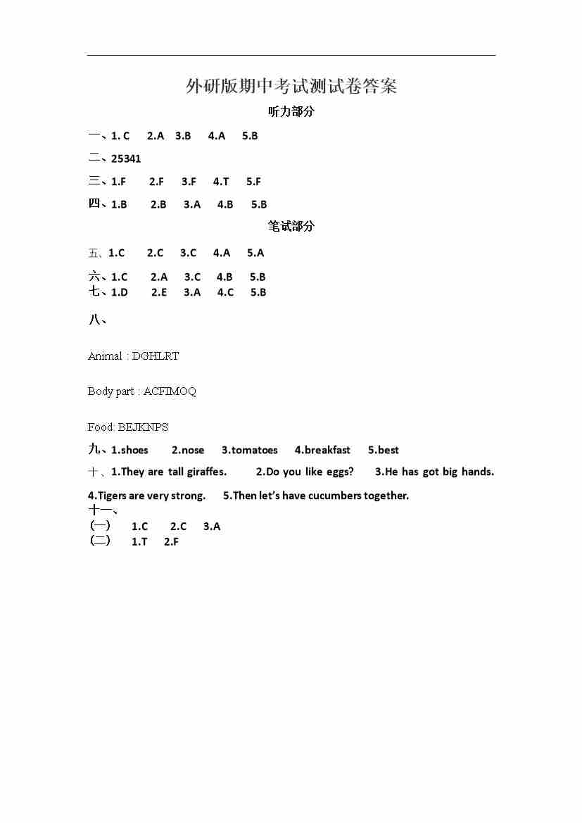 三下英语外研期中考试卷1答案