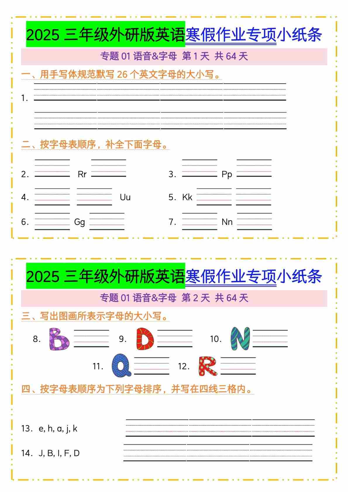 三(下)英语新外研寒假作业小纸条【空白】