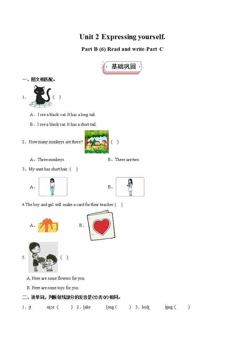 三下英语-Unit2(第5课时)Expressing yourself. PartB Let's Learn&Listen and chant 同步分层作业(人教PEP版)