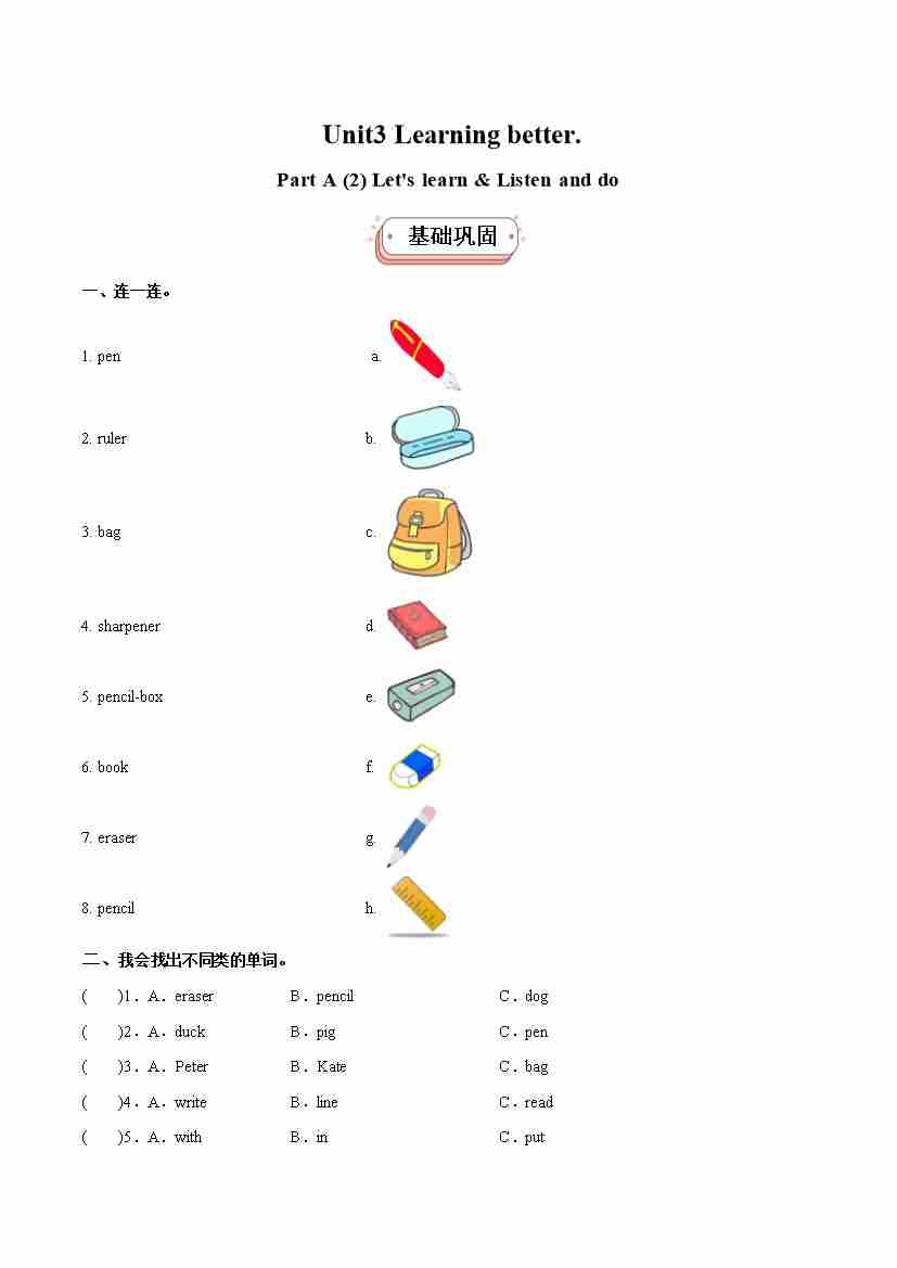 三下英语-Unit3(第2课时)Learning better. PartA Let's learn&Listen and do 同步分层作业(人教PEP版)