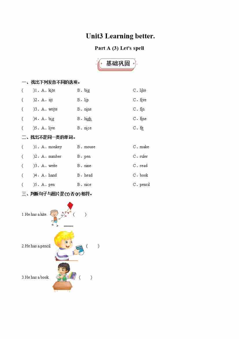 三下英语-Unit3(第3课时)Learning better. PartA Let's spell 同步分层作业(人教PEP版)