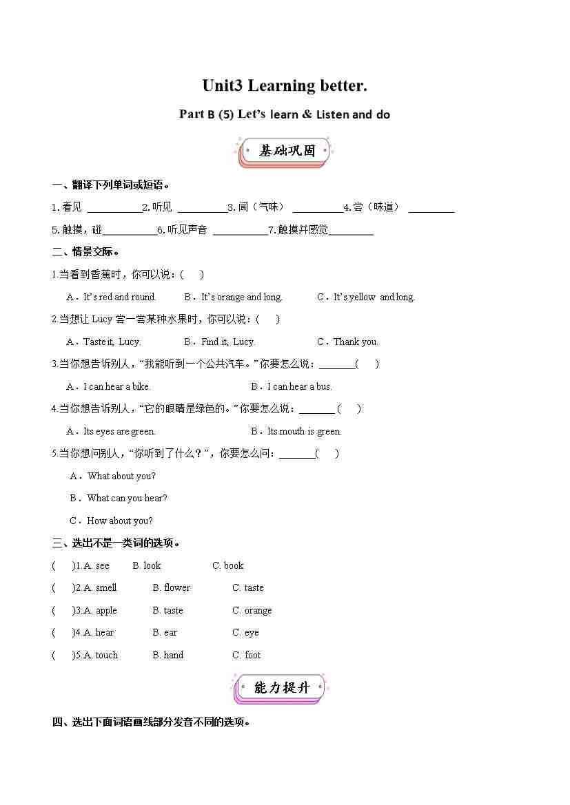三下英语-Unit3(第5课时)Learning better. PartB Let's Learn&Listen and do 同步分层作业(人教PEP版)