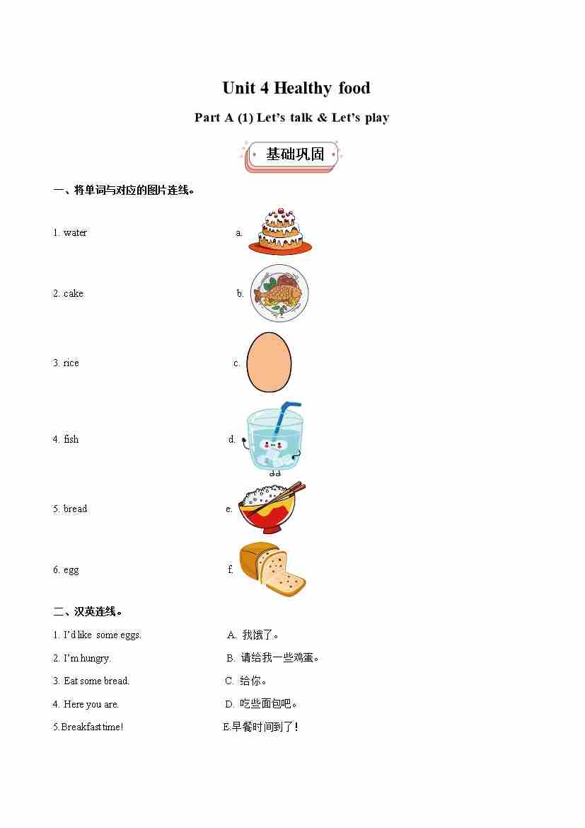三下英语-Unit4(第1课时)Healthy food . PartA Let's talk& Let's play 同步分层作业(人教PEP版)