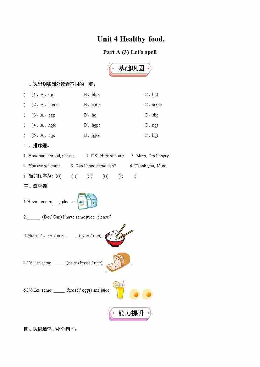 三下英语-Unit4(第3课时)Healthy food . PartA Let's spell 同步分层作业(人教PEP版)