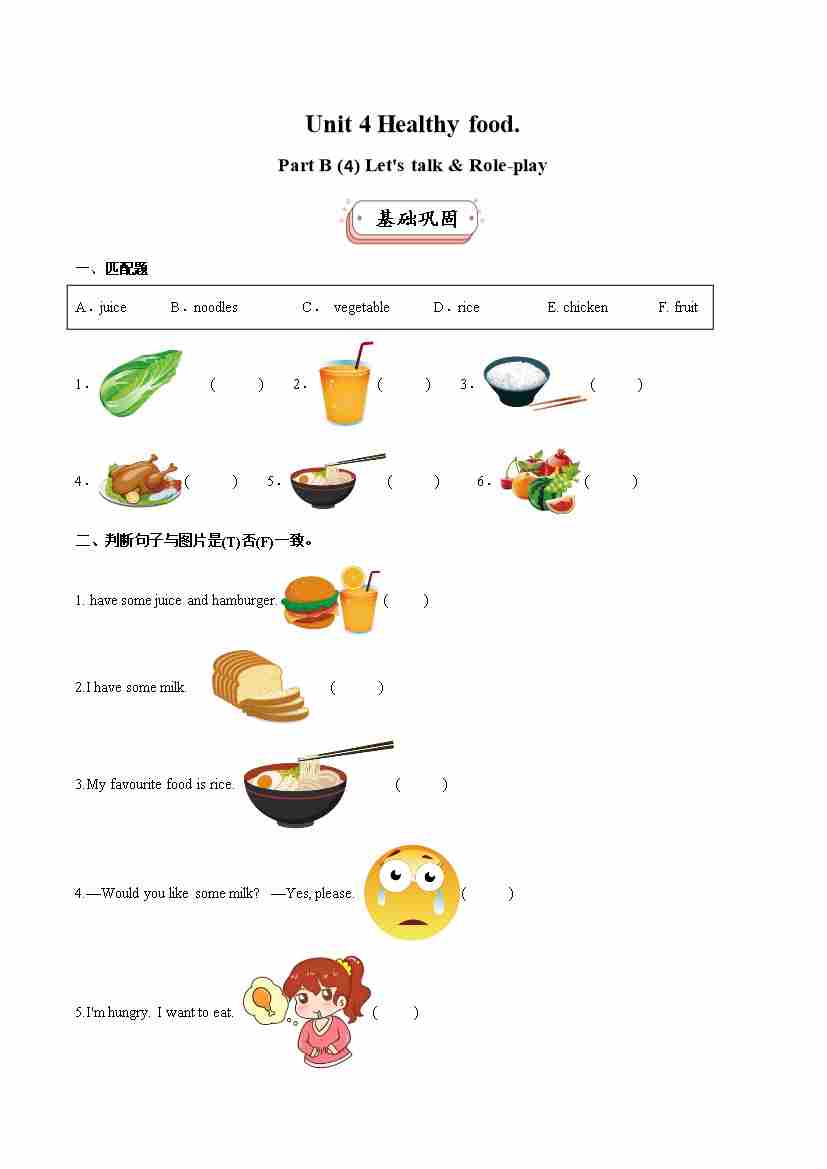 三下英语-Unit4(第4课时)Healthy food . PartB Let's talk&Role-play 同步分层作业(人教PEP版)