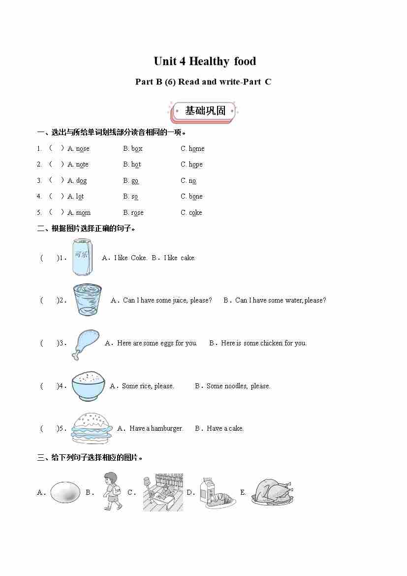 三下英语-Unit4(第5课时)Healthy food . PartB Let's Learn&Listen and chant 同步分层作业(人教PEP版)