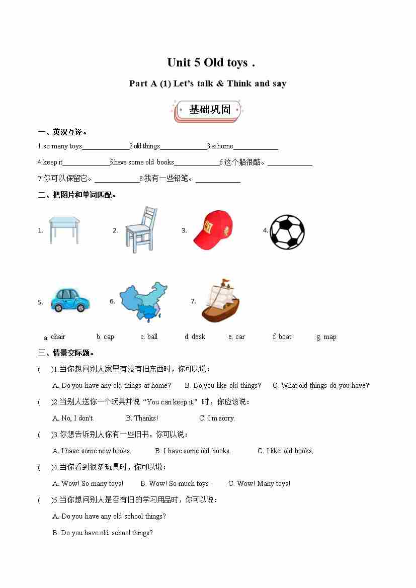 三下英语-Unit5(第1课时)Old toys . PartA Let's talk& Think and say 同步分层作业(人教PEP版)