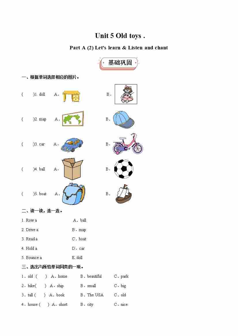 三下英语-Unit5(第2课时)Old toys . PartA Let's learn&Listen and chant 同步分层作业(人教PEP版)